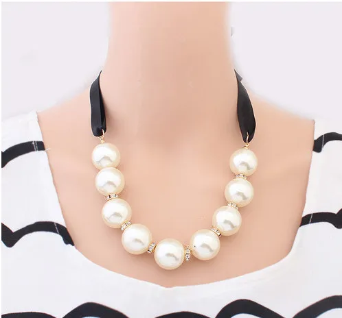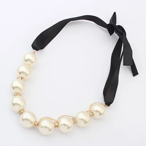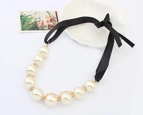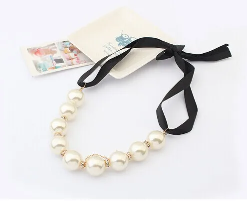 office/career(OL) style women ribbon pearl set auger necklace jewelry 2021,black ribbon gold-color pearl necklace