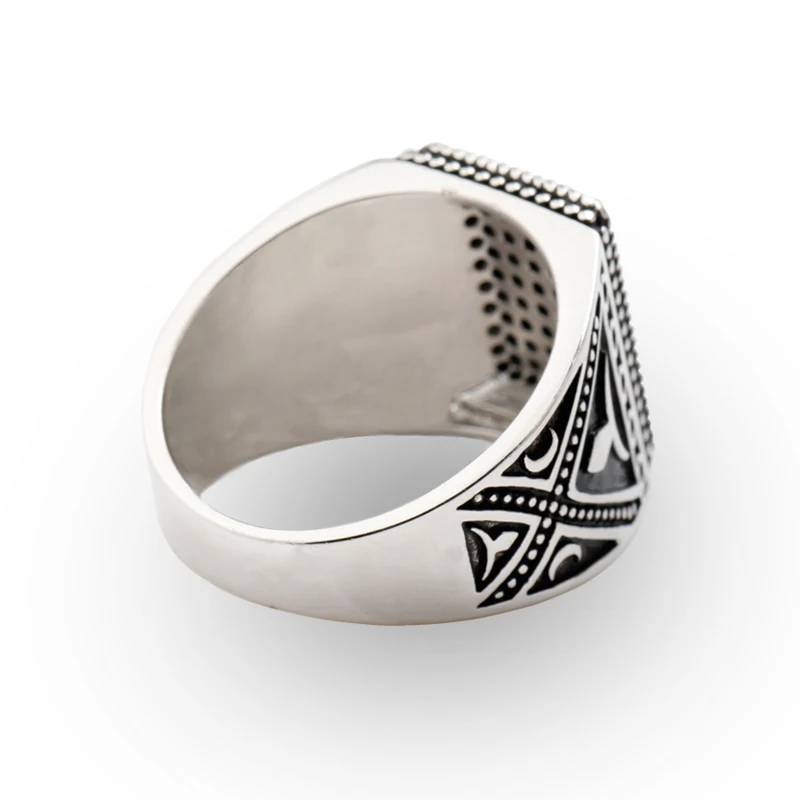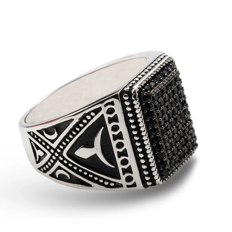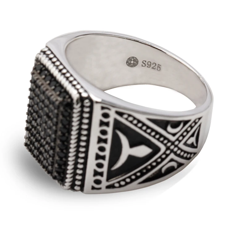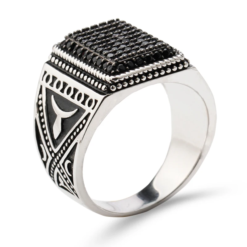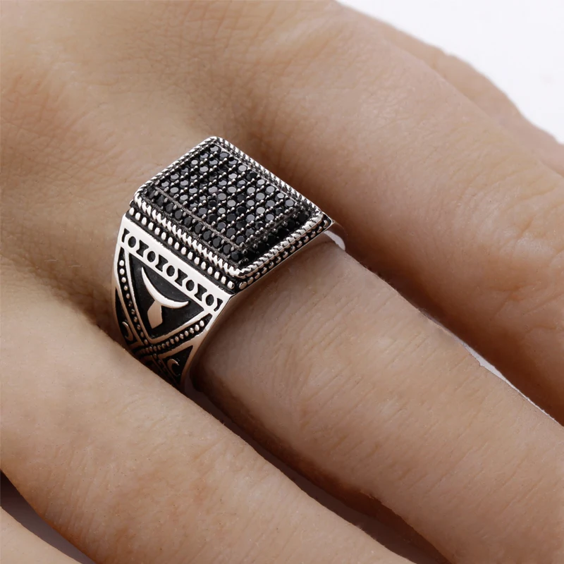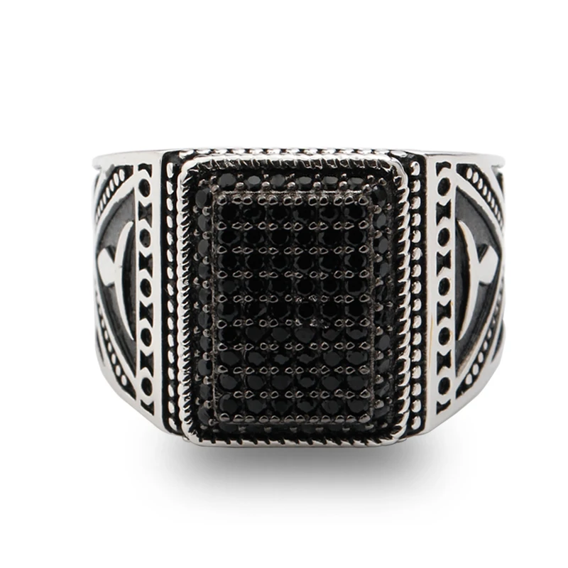 Punk 925 Sterling Silver Signet Ring Rectangle Shape Pave Setting Black Zircon Stone for Men Fine jewelry