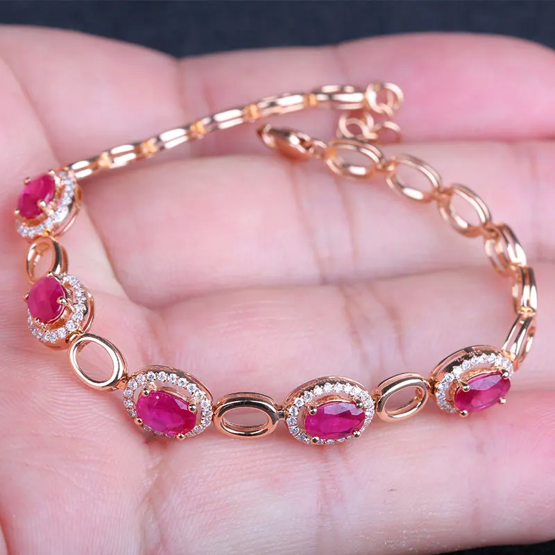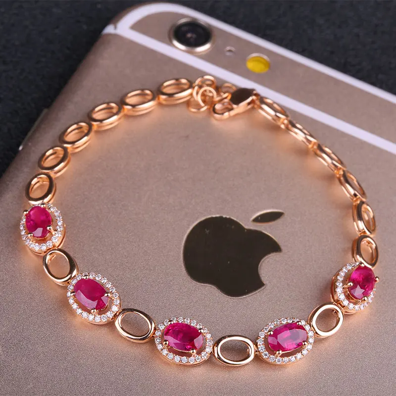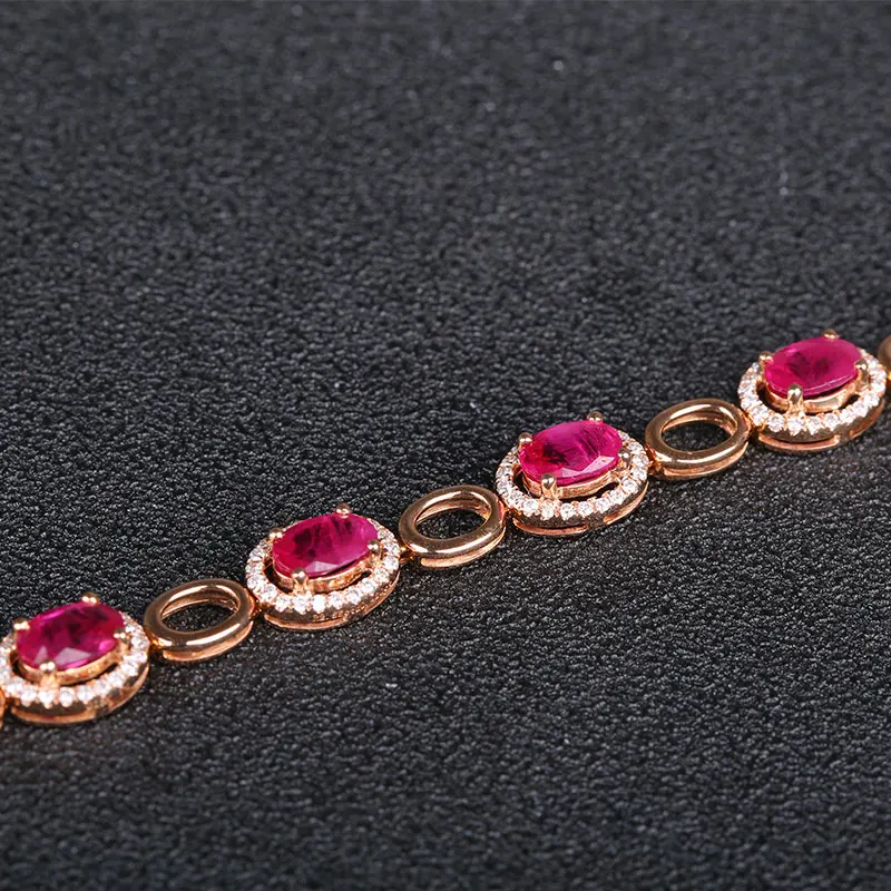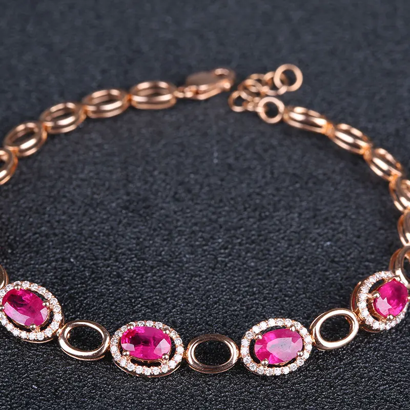 Noble Natural Ruby Bracelets for Women 18K Gold Prong Setting Rubies and Diamond Gemsone Fine Jewelry Bracelet