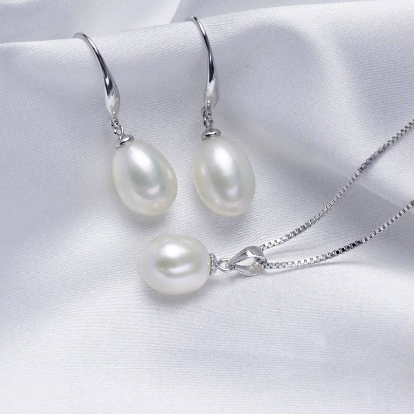 simple cultured pearl set jewerly 100% sterling silver set with 9mm AAA drop shape pearls