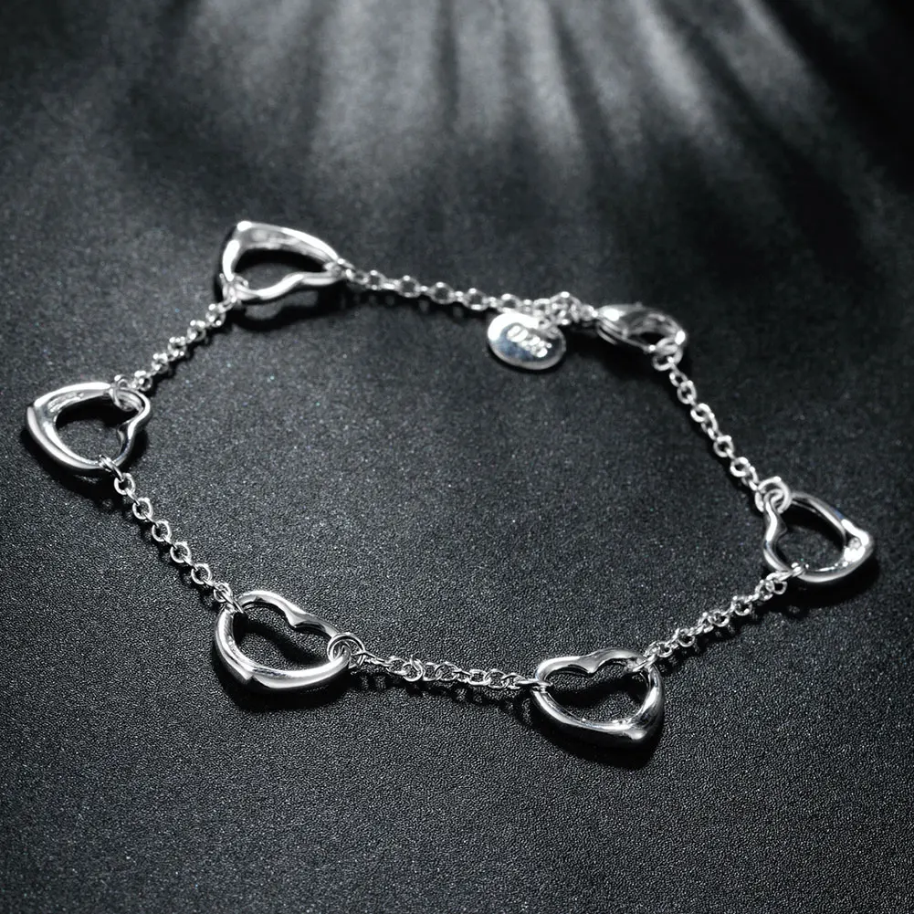 Street Charms 925 Sterling Silver romantic LOVE five hearts Bracelet necklace Jewelry set for women Party wedding gifts