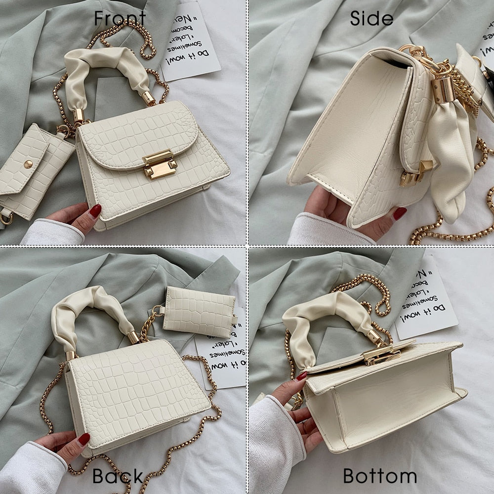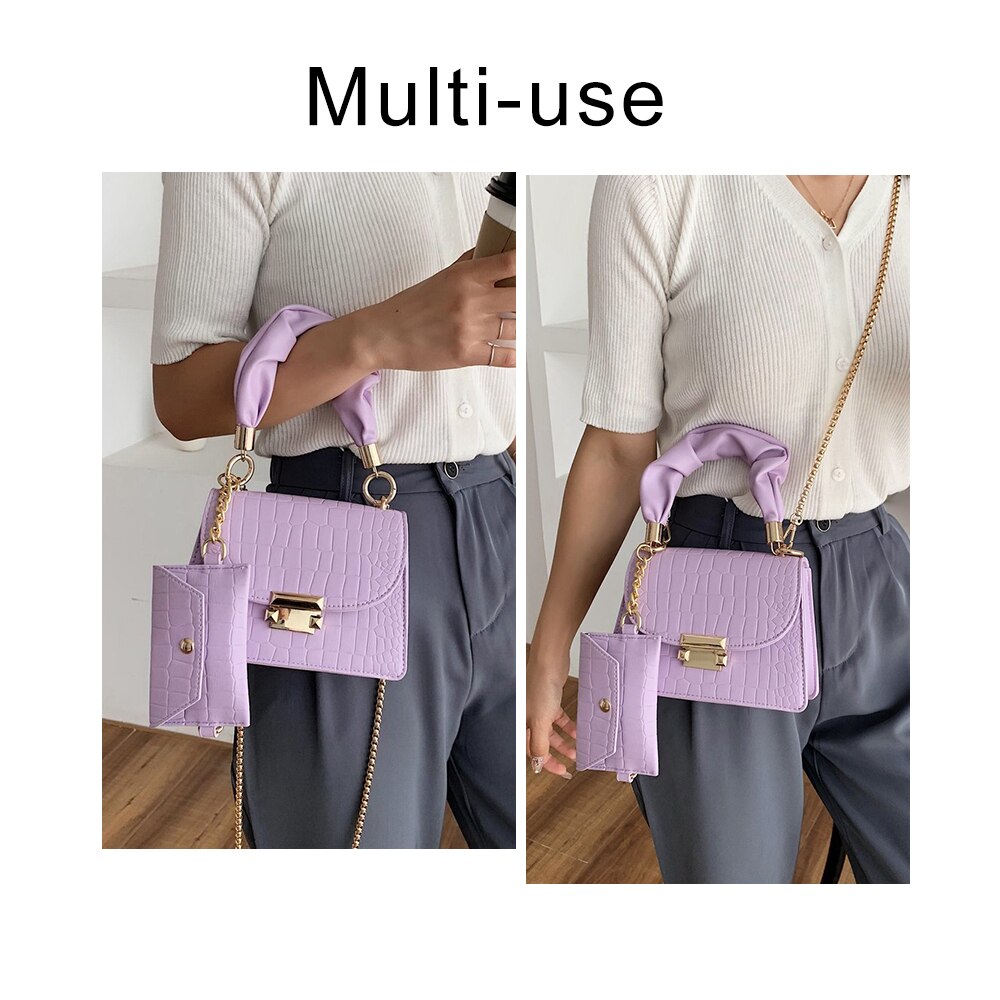 TTOU 2 Pcs/set Crocodile Pattern Small Leather Cross Body Bags For Women 2022 Elegant Travel Chain Crossbody Shoulder Handbags