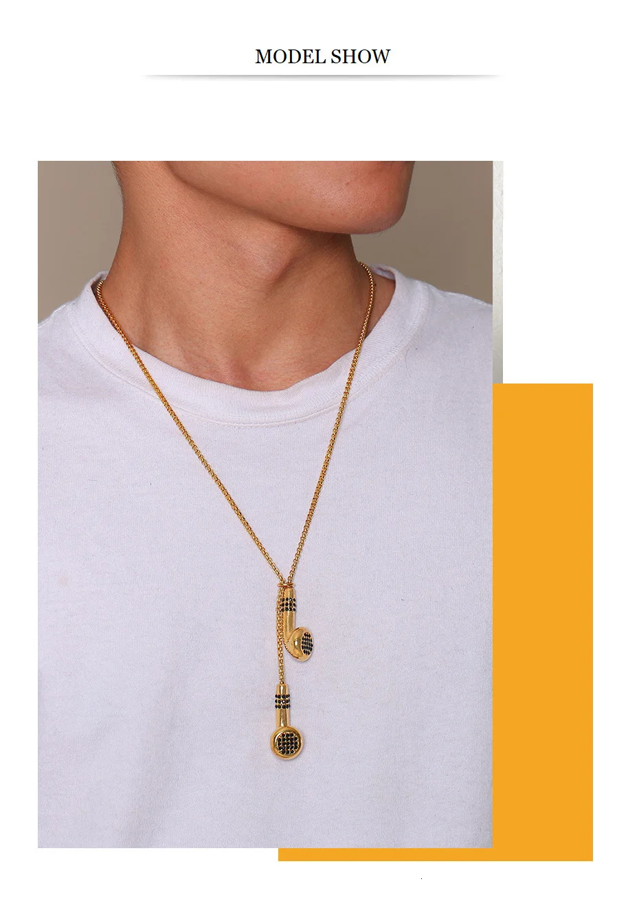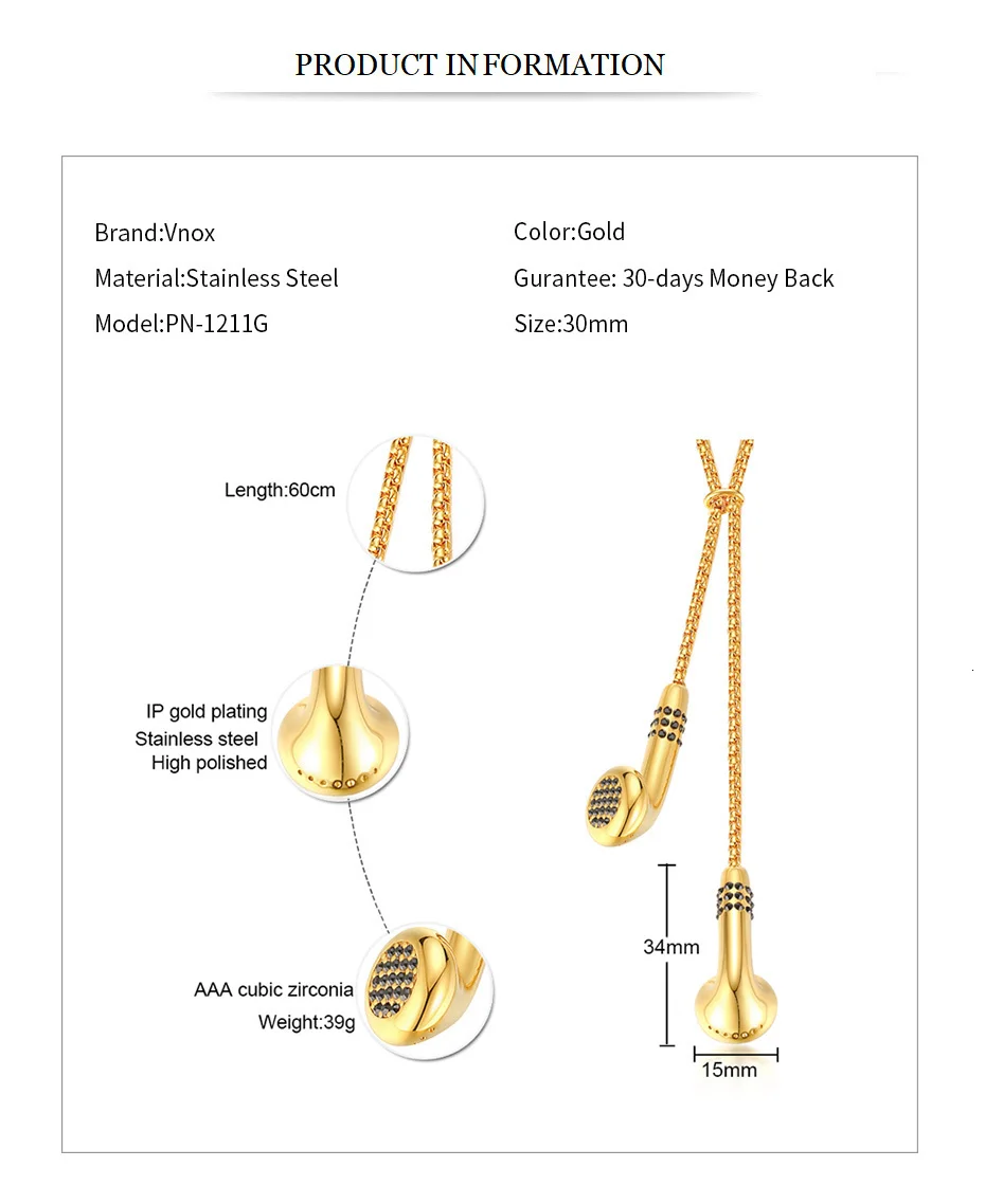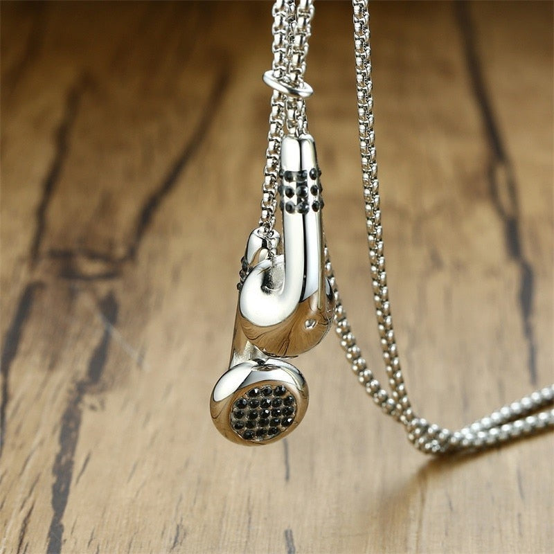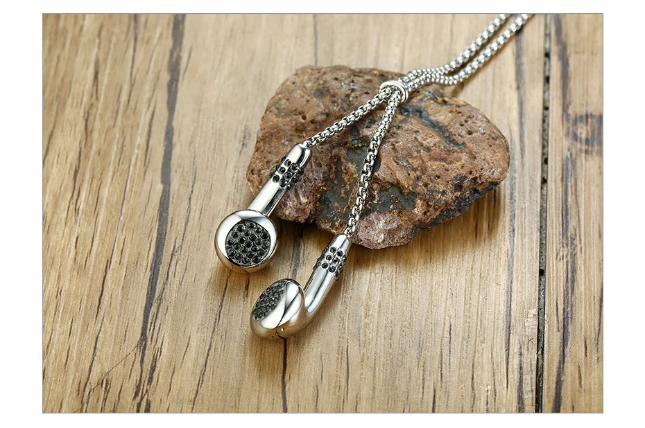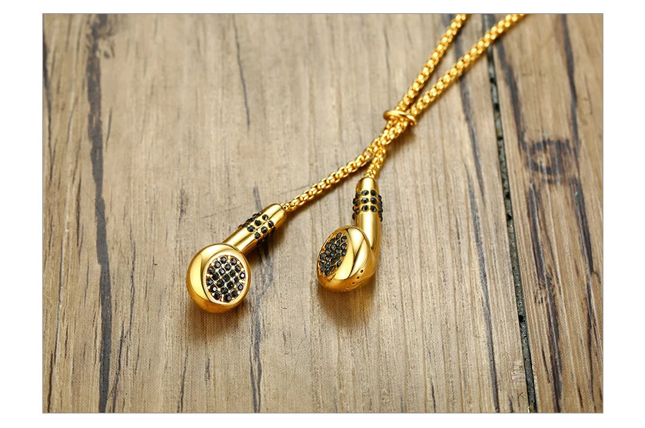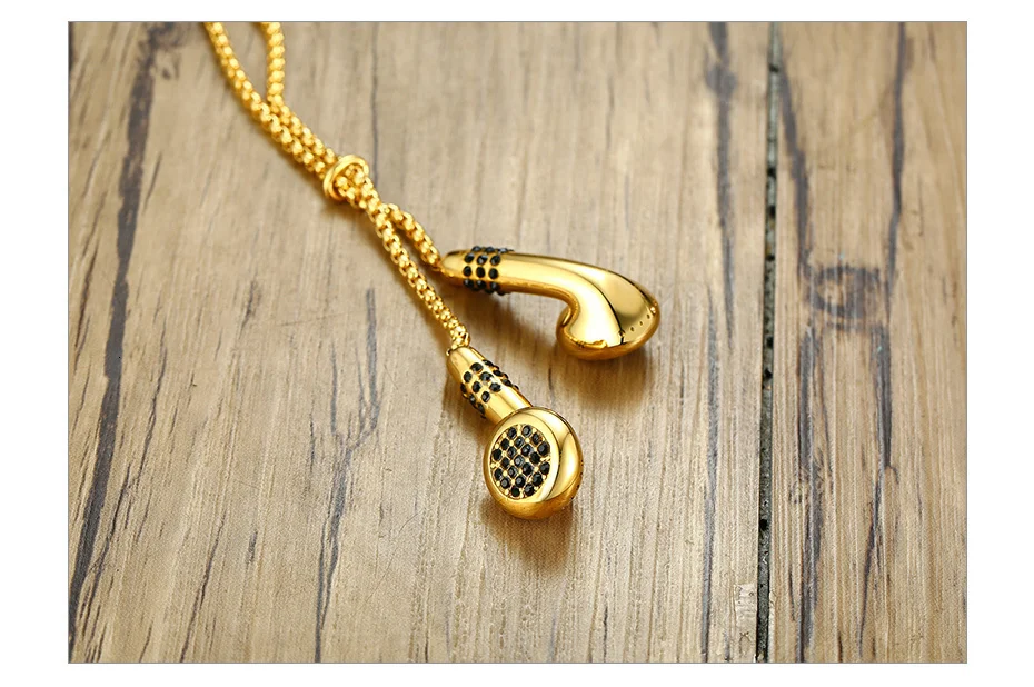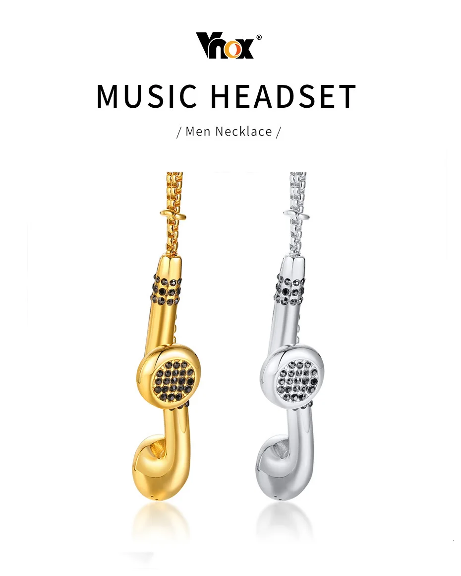 Vnox Unique Mens Headset Necklaces Gold and Tone Stainless Steel Love Music Pendant Gifts for Him Boy
