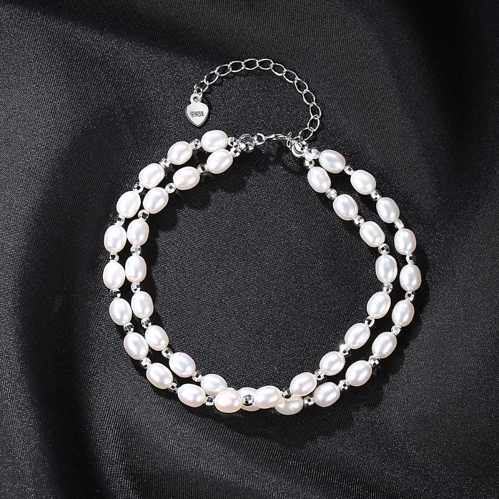 Brand Charms Bracelet White Rice Pearl with 925 Sterling Silver Beads Female Chain Link Bracelet Wholesale