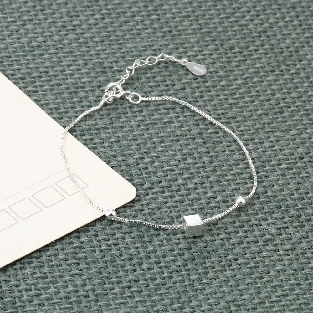 Hengyi Square Chain Link Bracelets Authentic 100% 925 Sterling Silver for Women Anniversary Silver 925 Jewelry