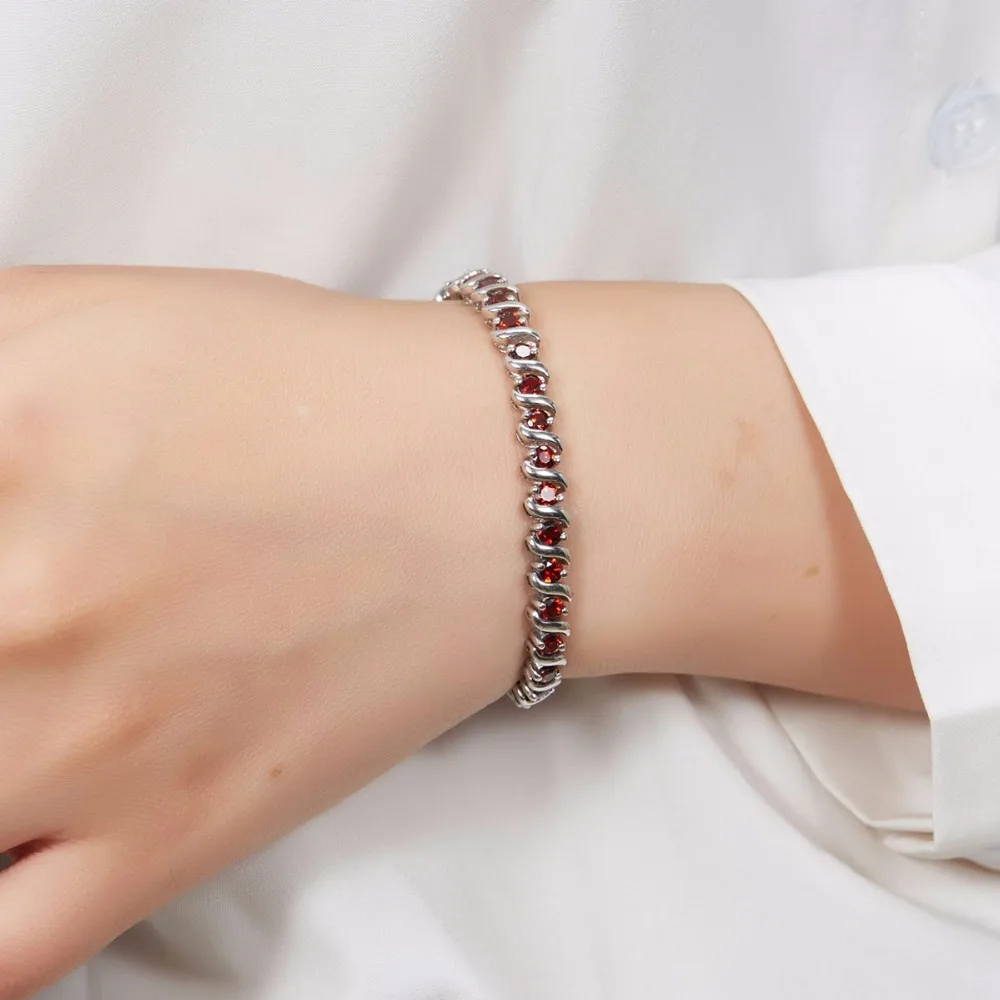 Hutang 9.45Ct Natural Garnet Solid 925 Sterling Silver S Link Bracelet for women's Gemstone Fine Jewelry Birthd Gift 7.25