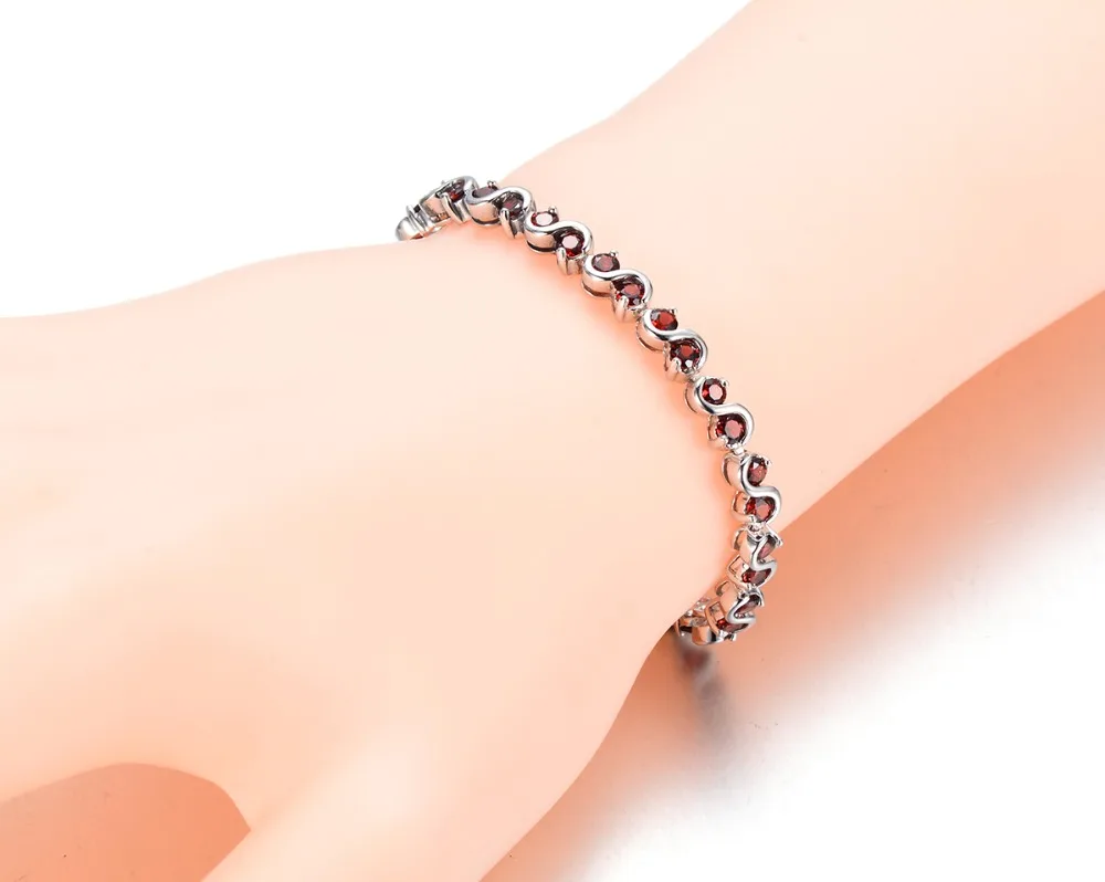 Hutang Trendy 7.04Ct Natural Garnet S Link Bracelet Solid 925 Sterling Silver women's Round Gemstone Fine Jewelry Bracelet 7.25