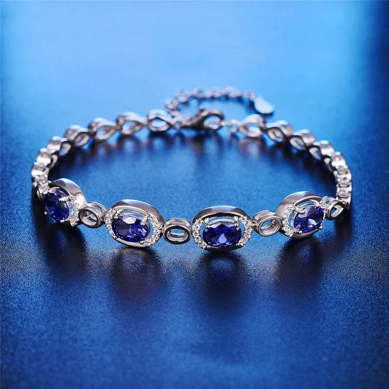 Chain Link Bracelet 5MM*7MM Blue Tanzanite 925 Sterling Silver Bracelets Heart Bracelet for Women with Gift Box