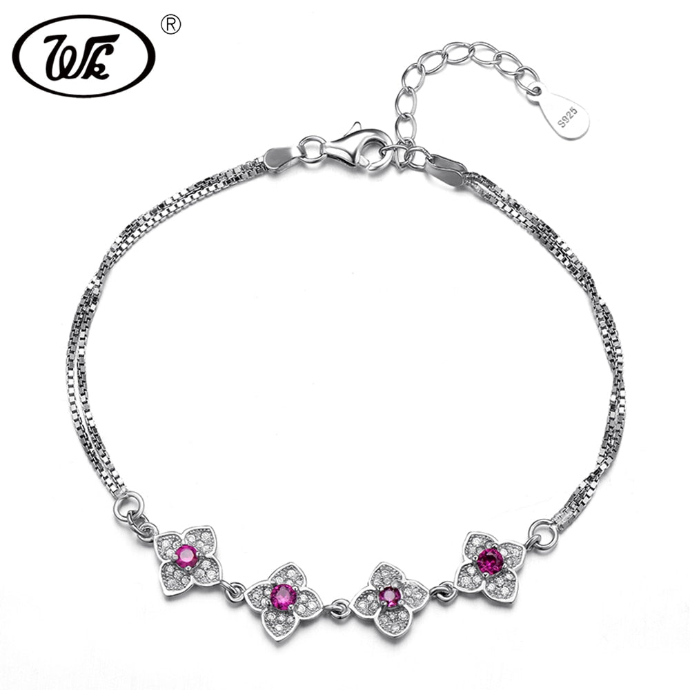 Luxury 925 Sterling Silver Bracelet Women Red Jade Flower Party Wedding Box Chain Link Bracelets Female Jewelry Gift W4 BA006