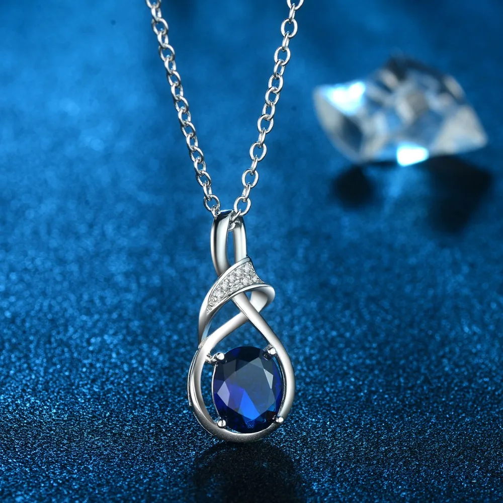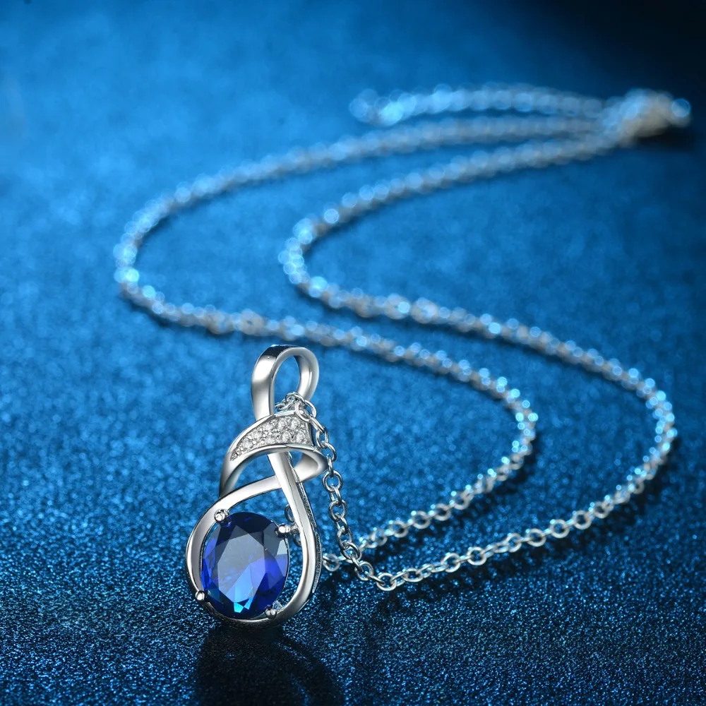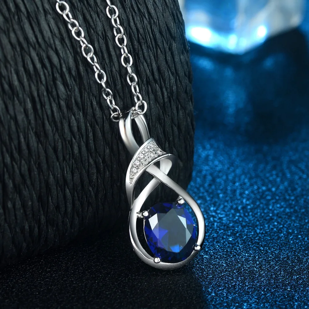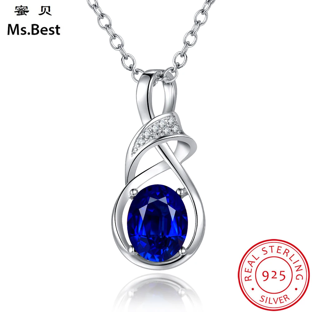 100% Genuine 925 sterling silver necklace Blue birthstone jewelry statement necklace for women Bohemia necklace 2020 Collar