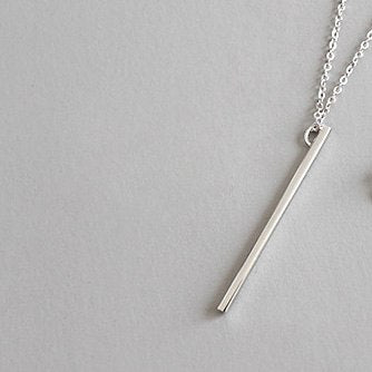 100% S925 sterling silver geometric vertical square tube square long silver necklace set chain