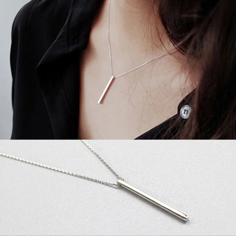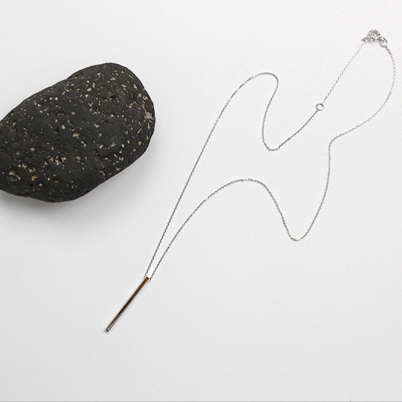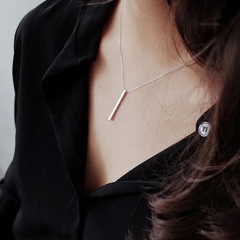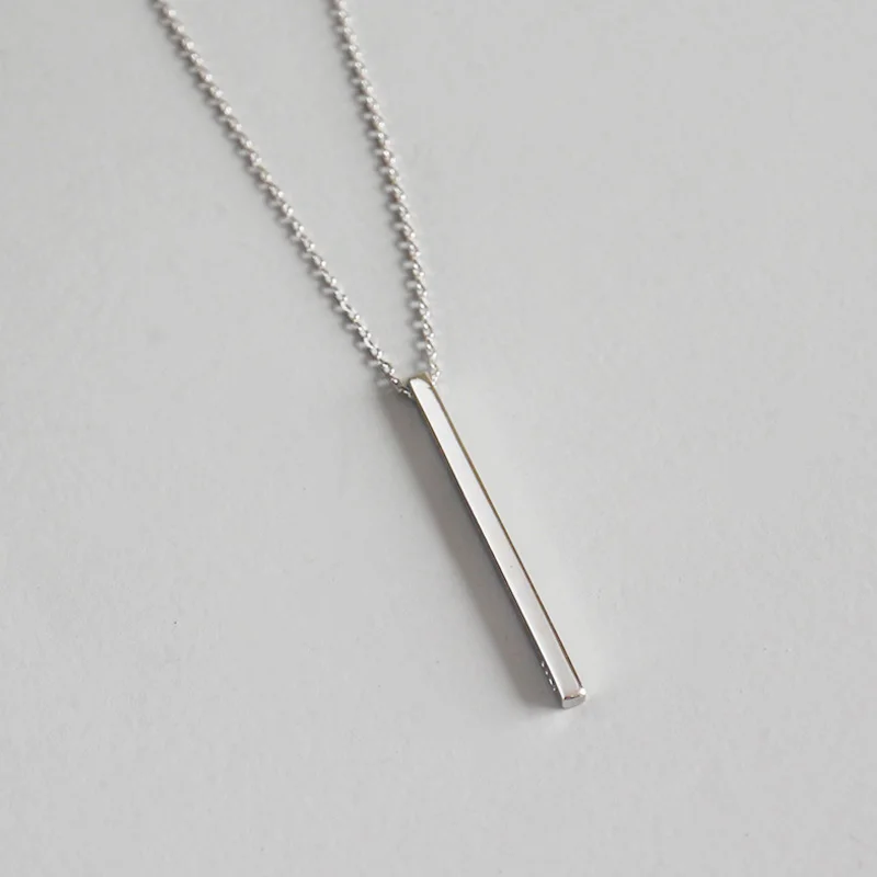 100% S925 Sterling Silver Simple Geometric Square Silver Necklace Jewelry