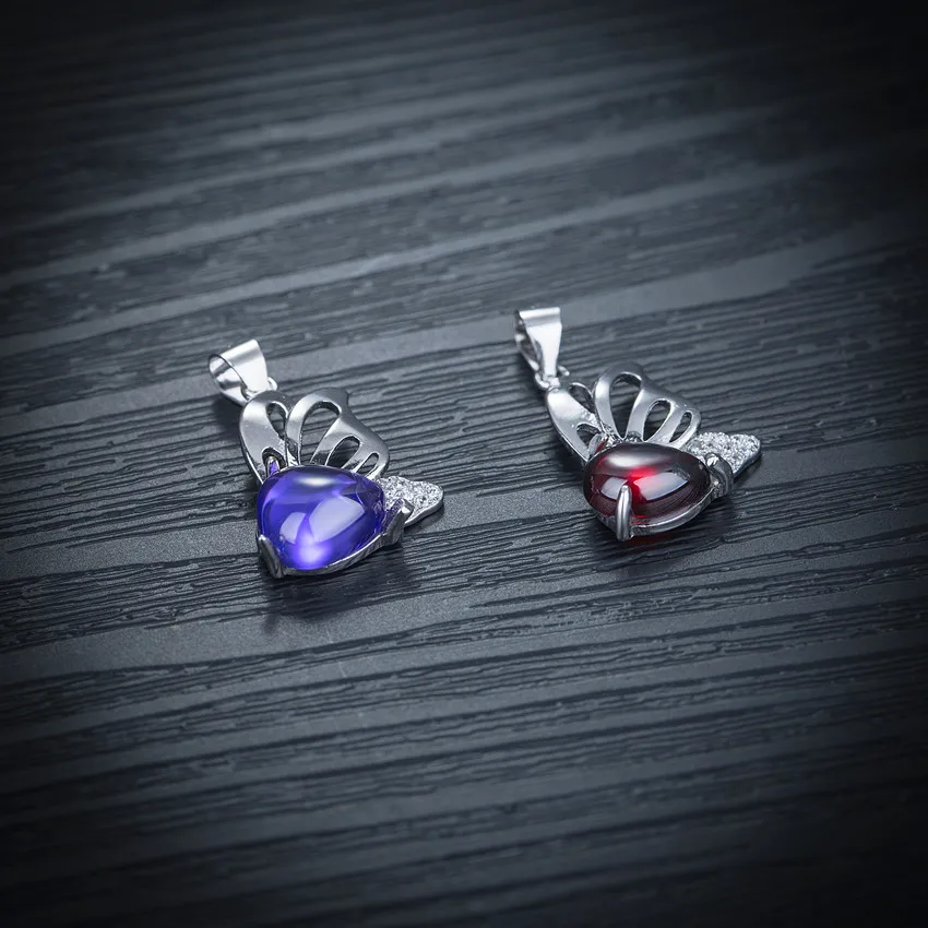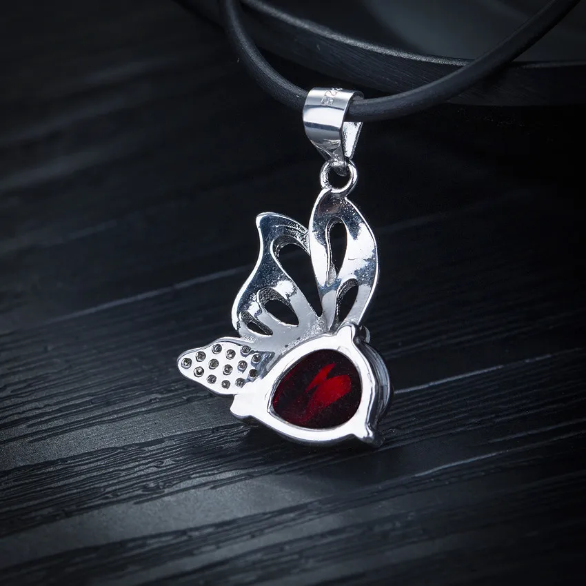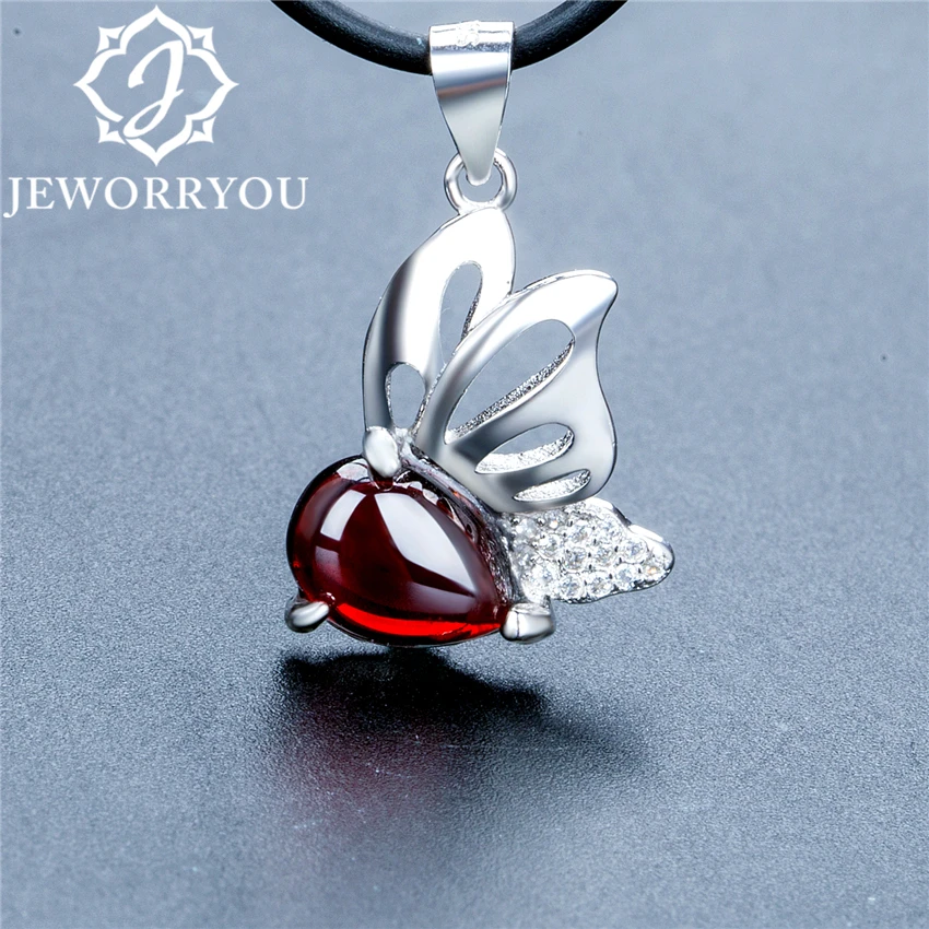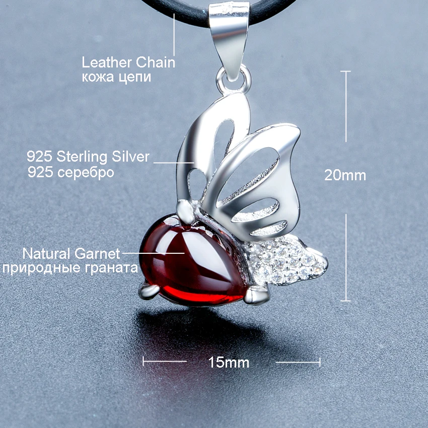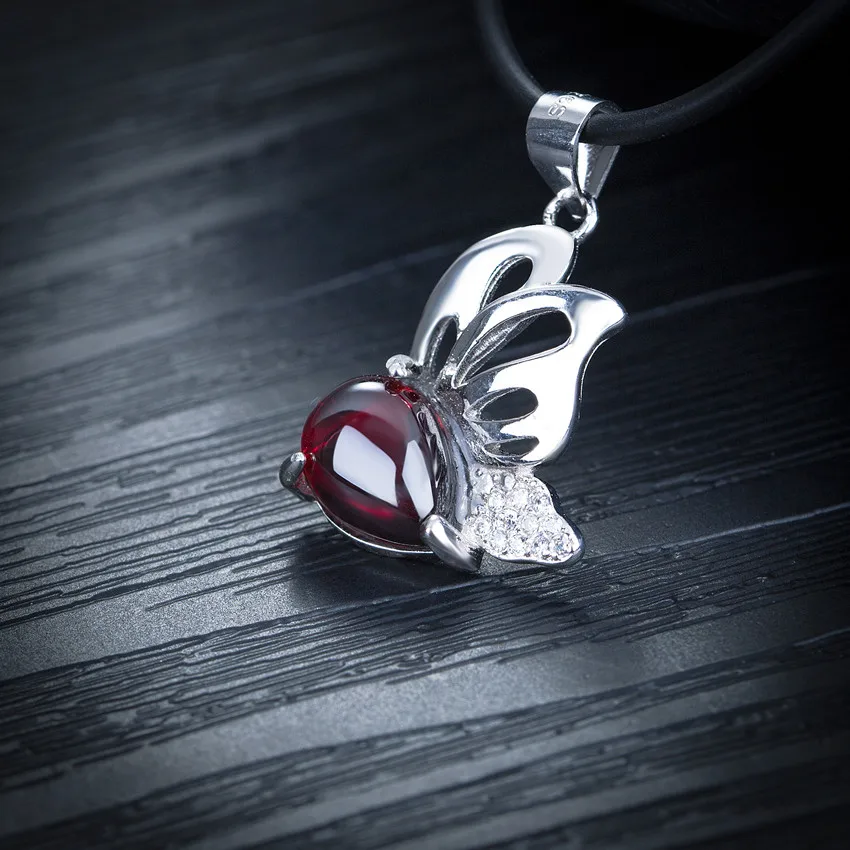 15X20mm Natural Garnet Stone Necklace Women Kids Silver Fly Butterfly Necklaces For Women Gift Collier Ras Du Cou