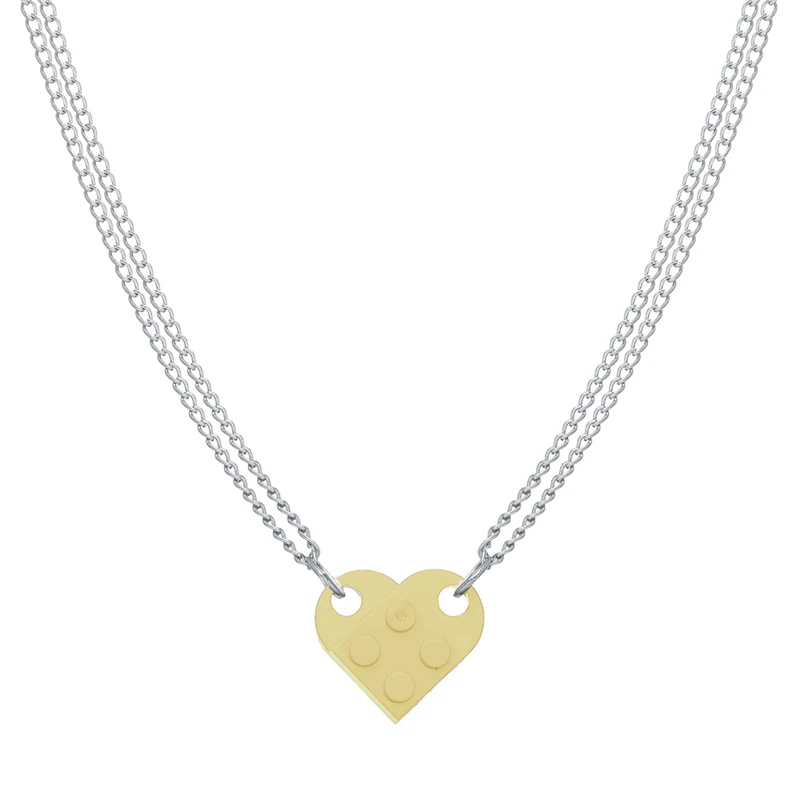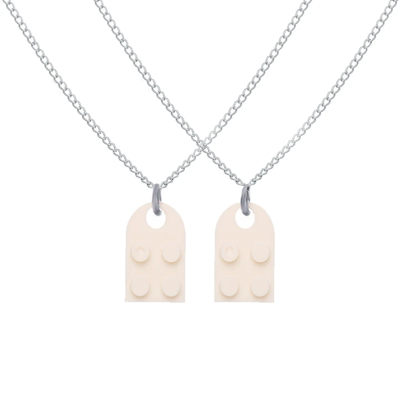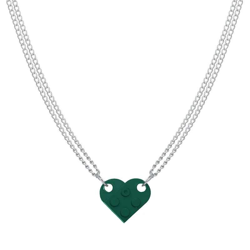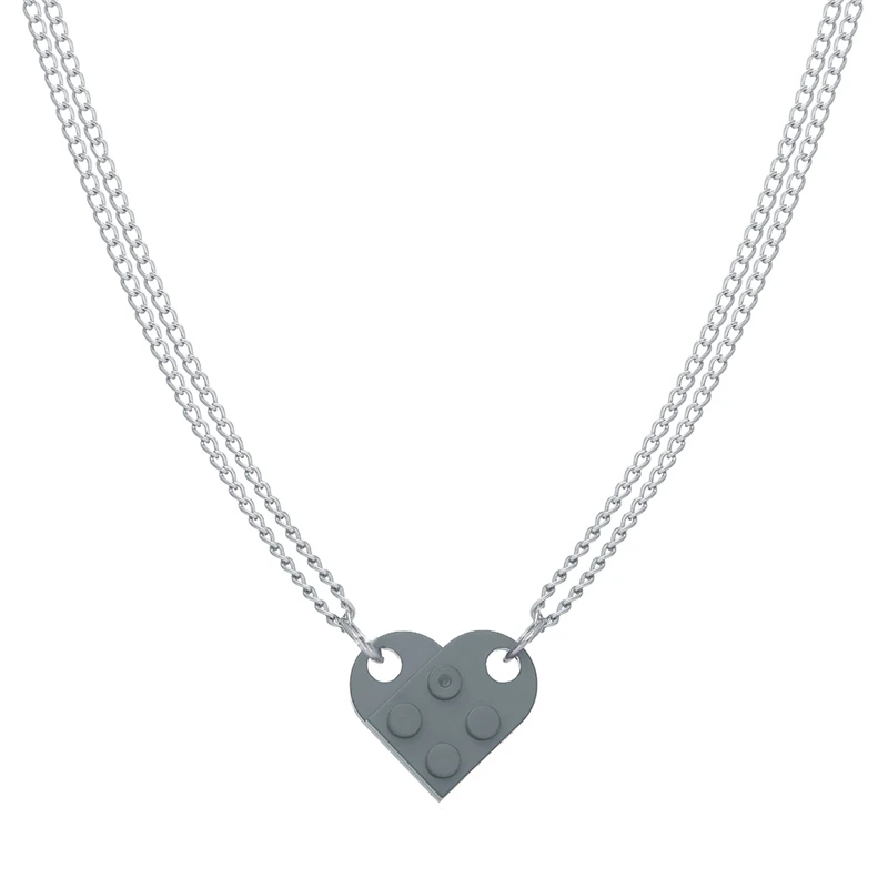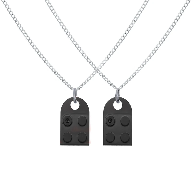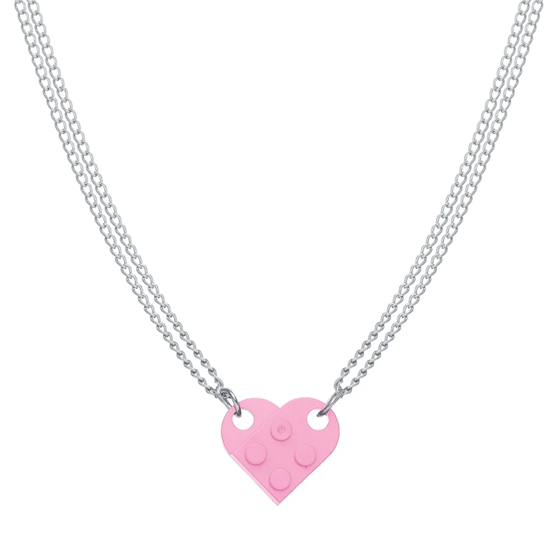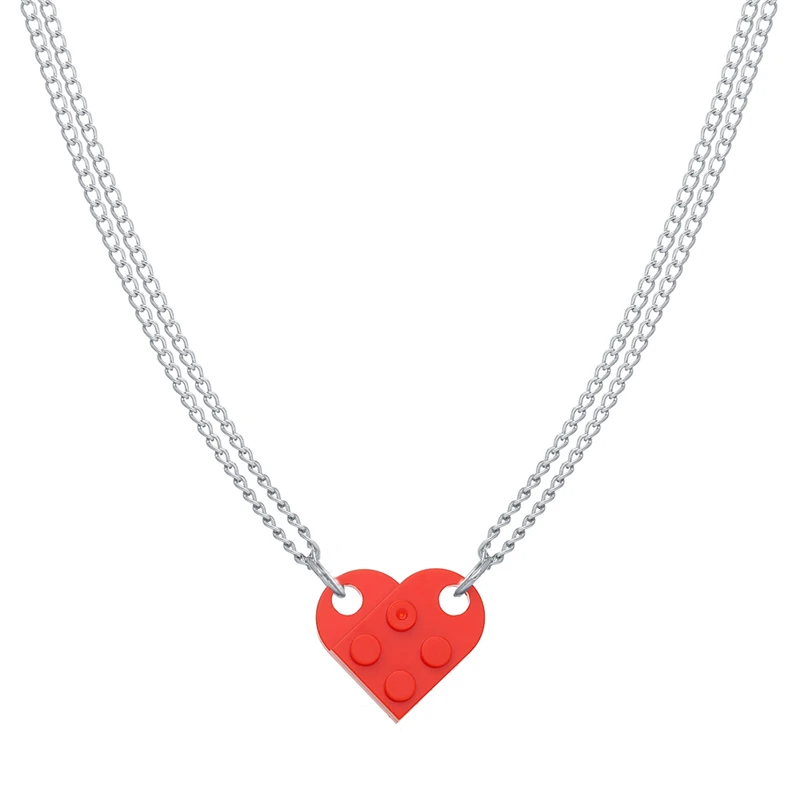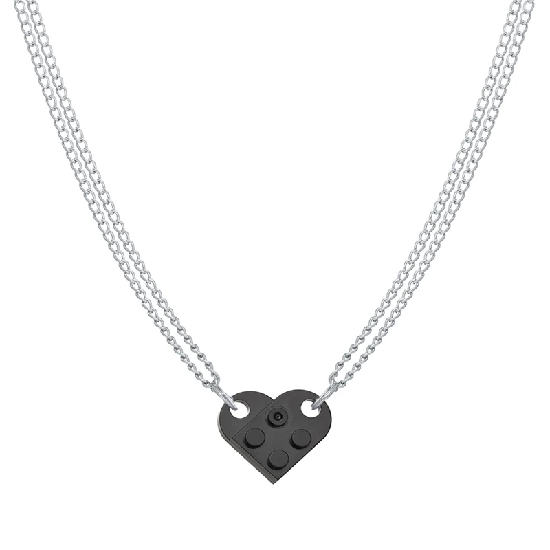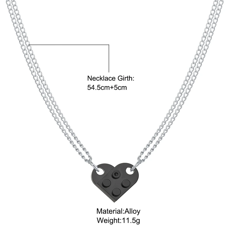 17KM Punk 2Pcs Heart Brick Couples Love Necklace For Lovers Women Men Lego Elements Friendship Necklaces Valentines Gift Jewelry