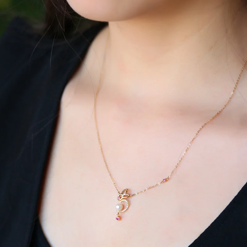 18k Gold diamond 19.5mm*9.3mm Akoya pearl pendant Animal shape Trendy style fine jewelry S04056P
