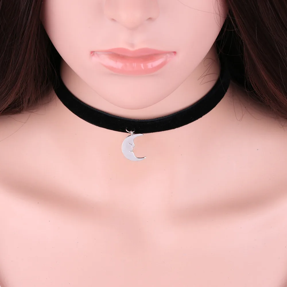 1Pc Smiling Moon Face Pendant Black Korea Velvet Rope Choker Collar Necklace Female Collier Bijoux Girls Gift