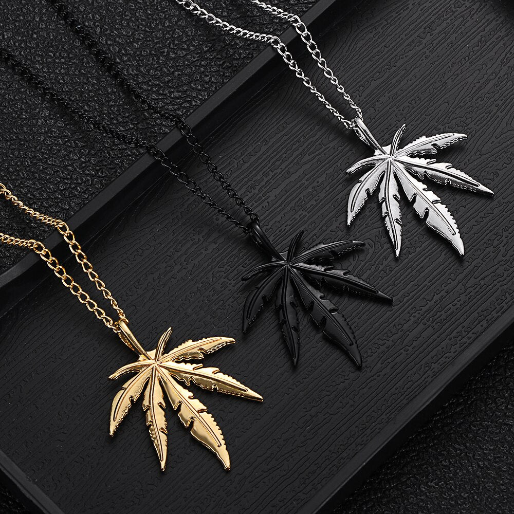 1Pcs Maple Leaf Necklace Titanium Steel Hemp Leaf Pendant Glittery Charm Chain Gift Jewelry Hip Hop Jewelry Accessories