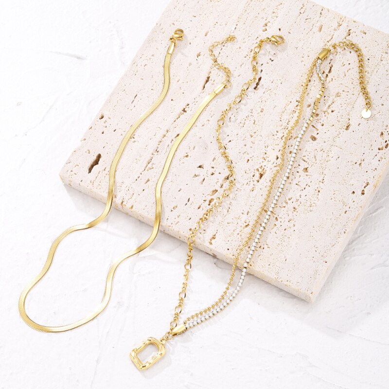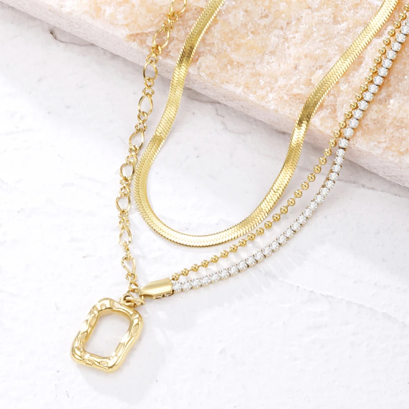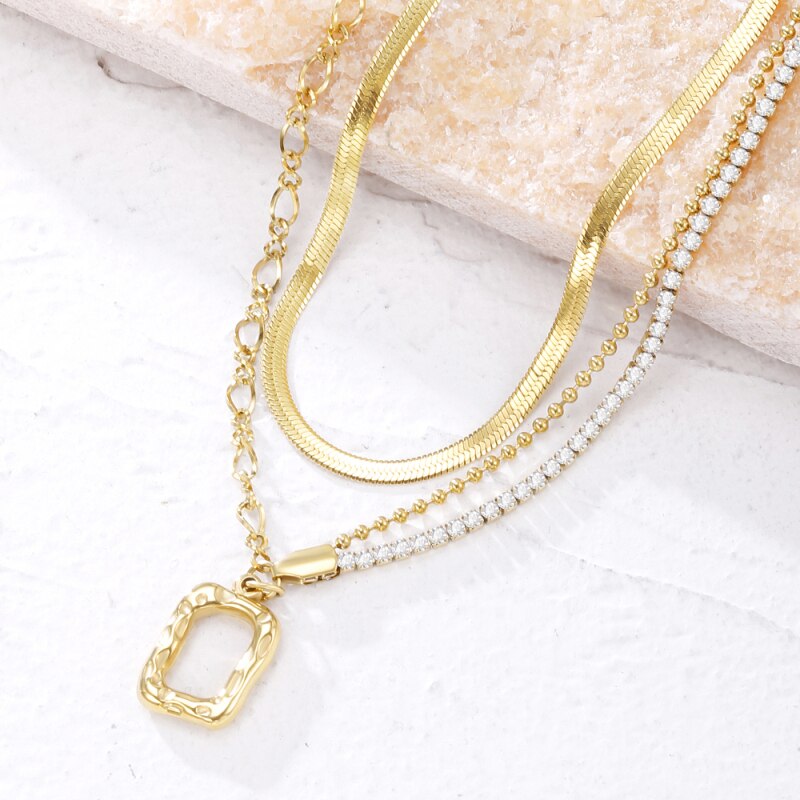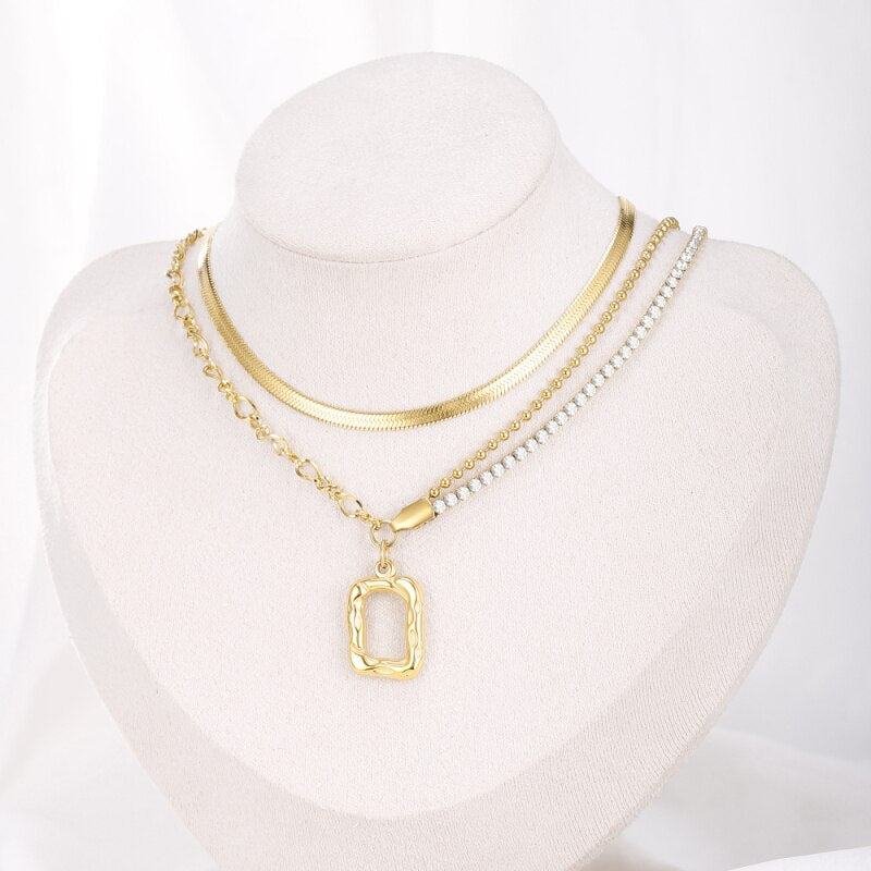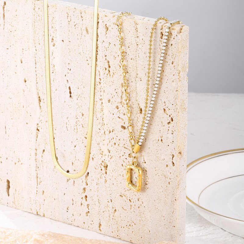 2 Layers Link Snake Chain Geometric Square Pendants Necklaces For Women Gold Metal Necklace Trend Jewelry Gift 2022
