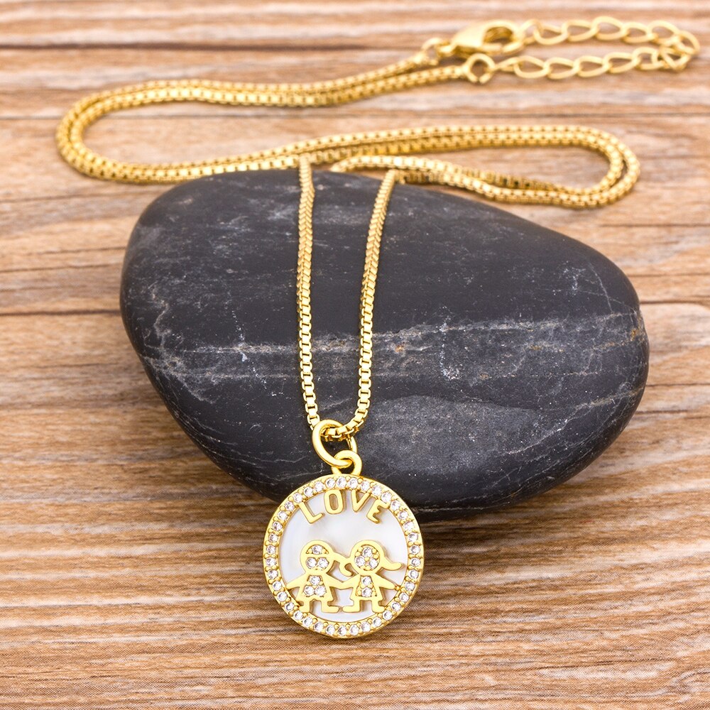 2021 Design Girl Boy Pendant Love Heart Family Necklace For Women Girls Kids Charm Year Party Christmas Jewelry Gifts