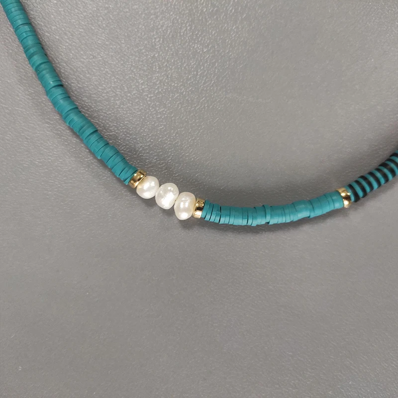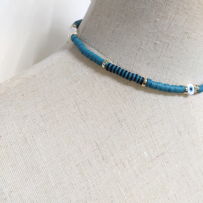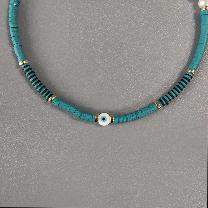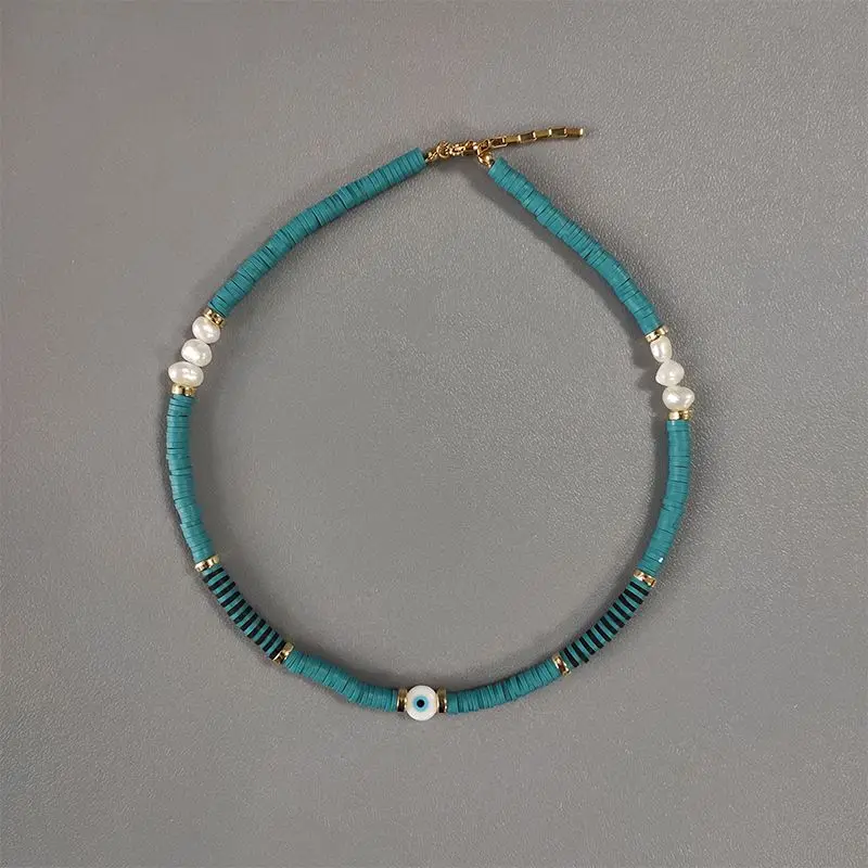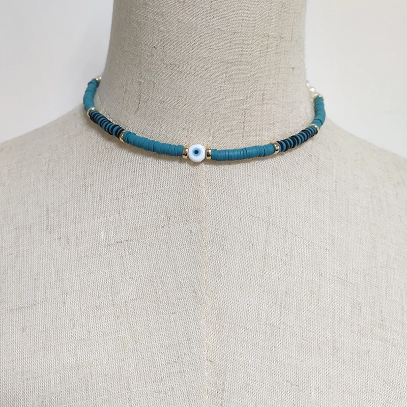 2021 Handmade Natural Pearl Short Necklace Blue Silicone Eye Bead Pendant Choker Mother's Day Gift Fashionable Exquisite Jewelry