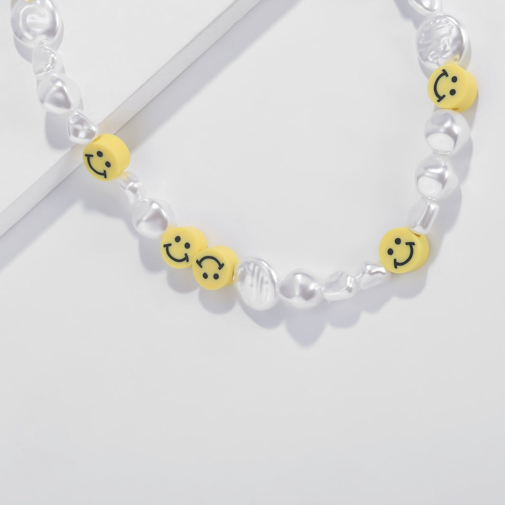 2021 irregular Imitation Pearl Choker Necklace For Women Girls Cute Sweet Smile Face Beads Necklaces Jewelry Gift