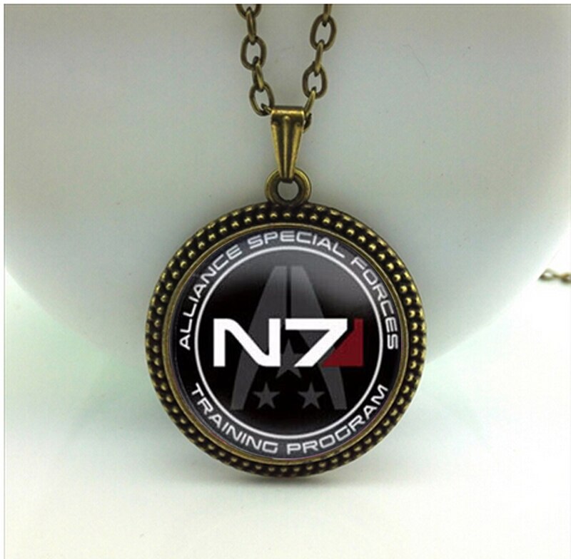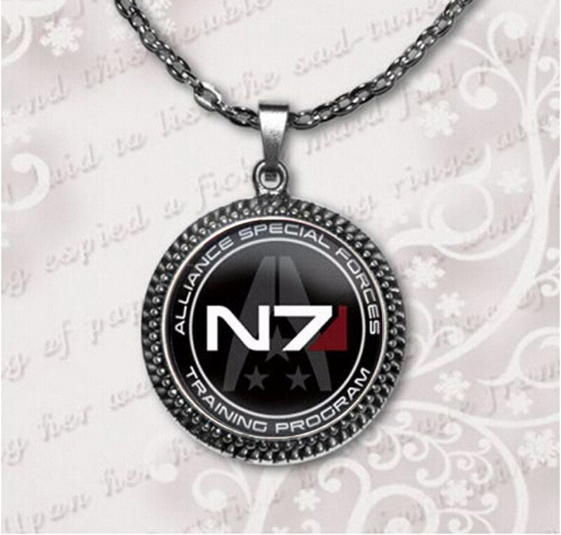 2021 Mass Effect Necklaces Inspired N7 Pendant Jewelry Glass Dome Cabochon Necklace Novel Round Pendants Link Chains HZ1