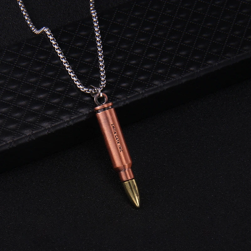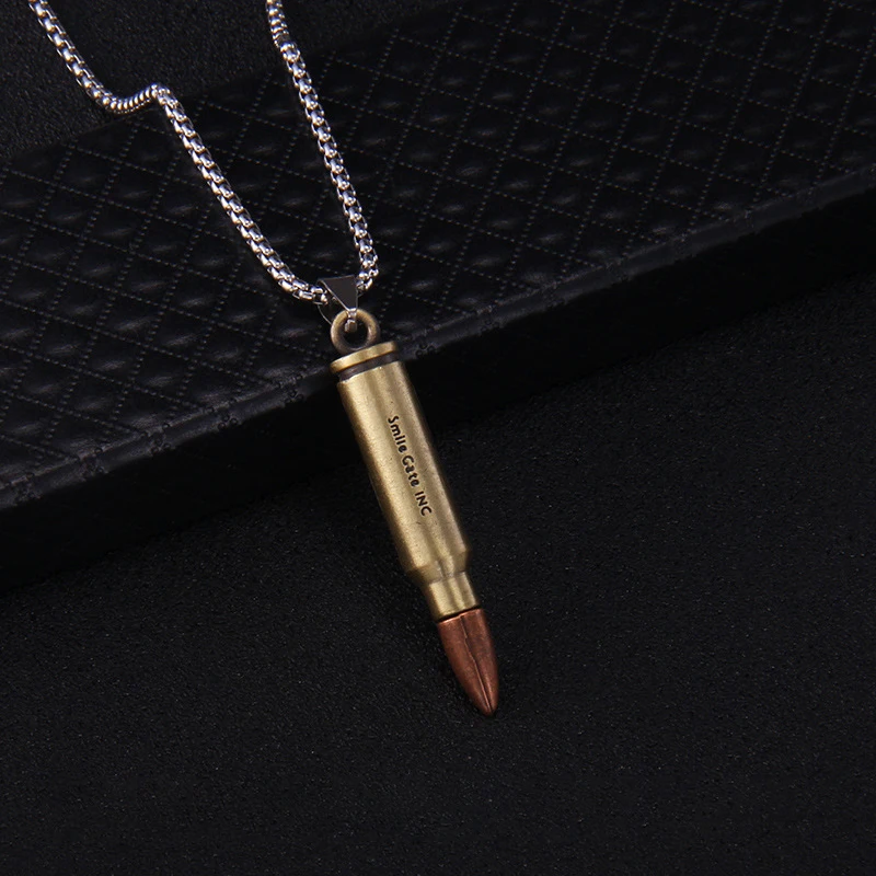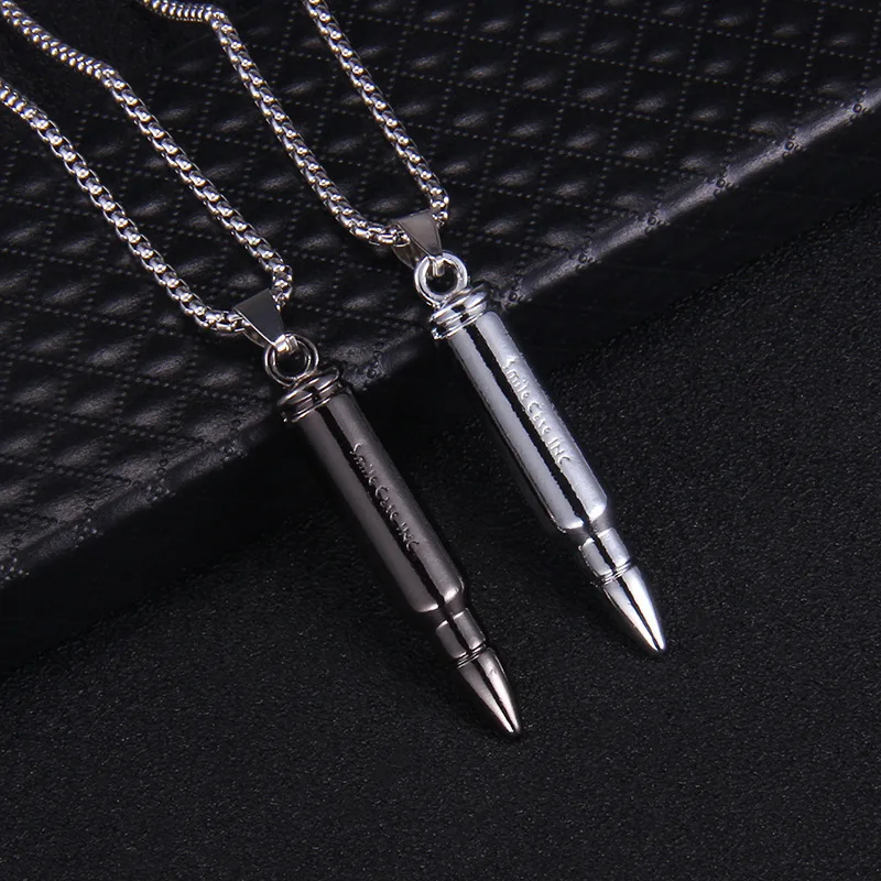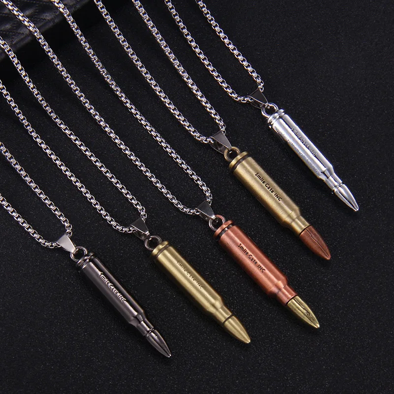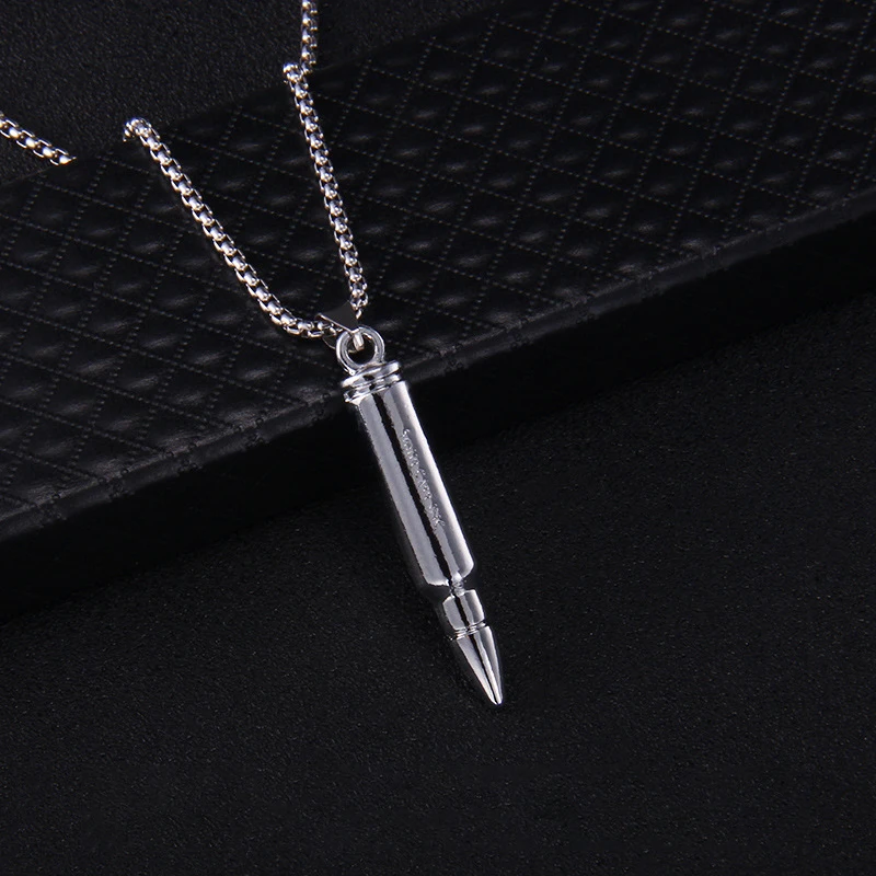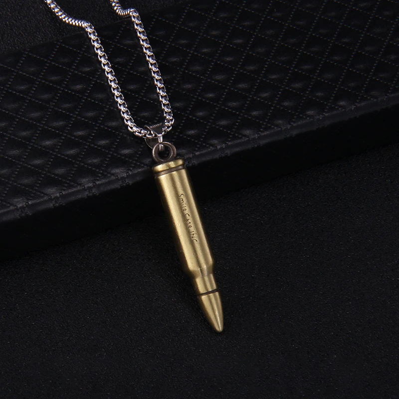 2021 Men's Bullet Shaped Gold Pendant Necklace European and American Hip Hop Metal Alloy Long Student Friend Gift Jewelry