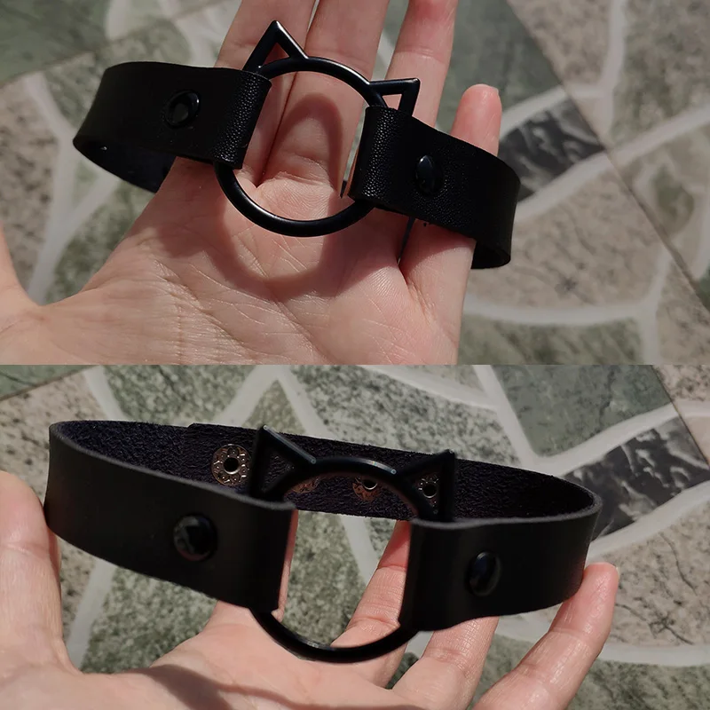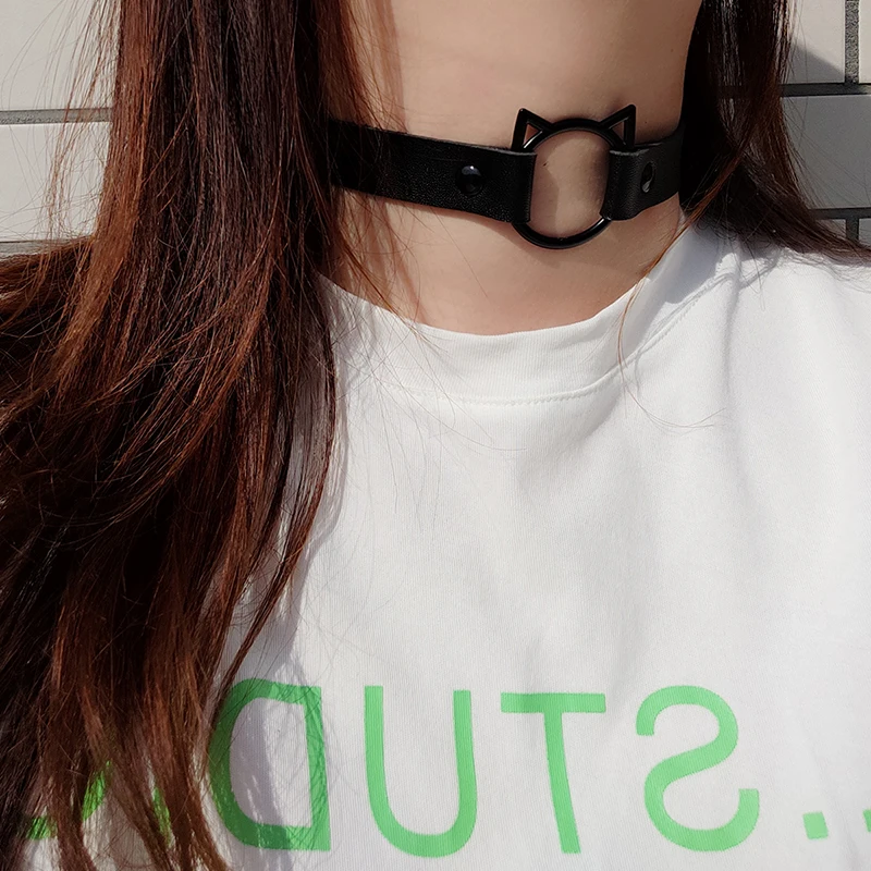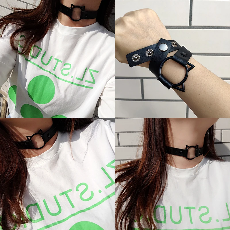 2021 Punk Harajuku Collar Choker Necklace Kit head PU Leather Choker Punk Goth Handmade Neck Bracelet Jewelry