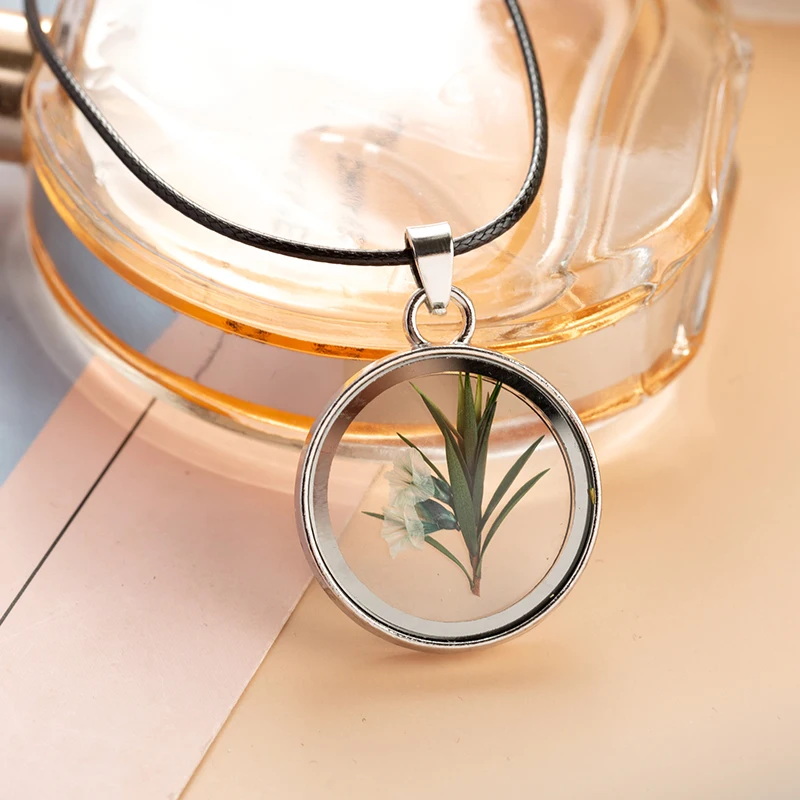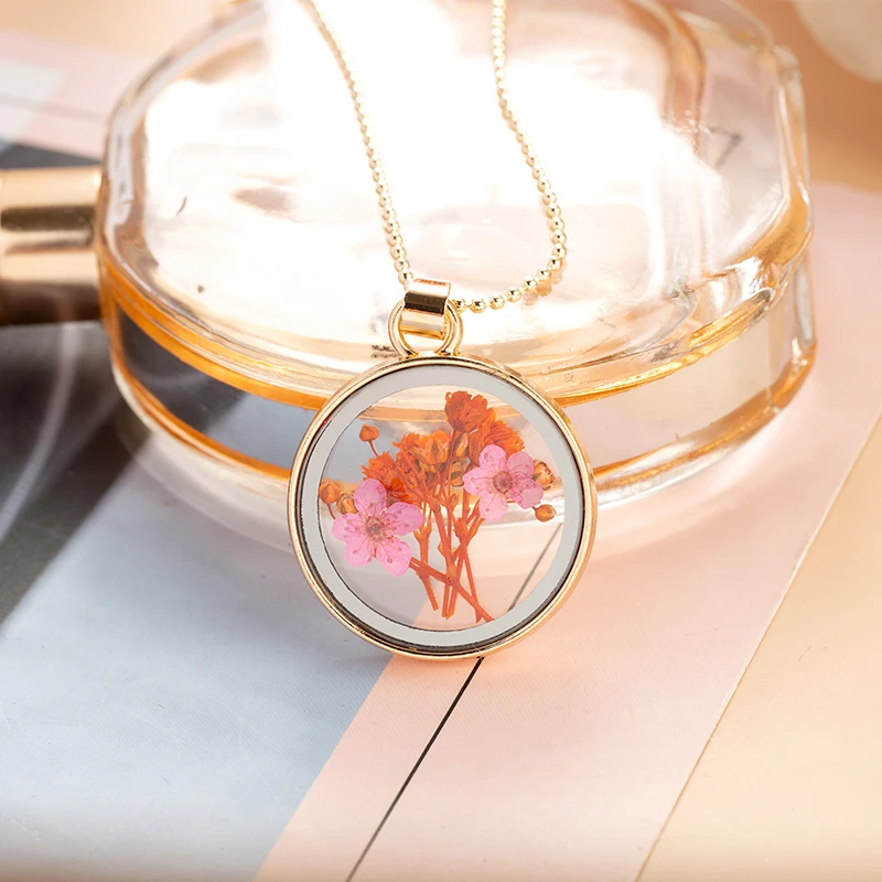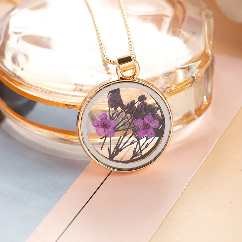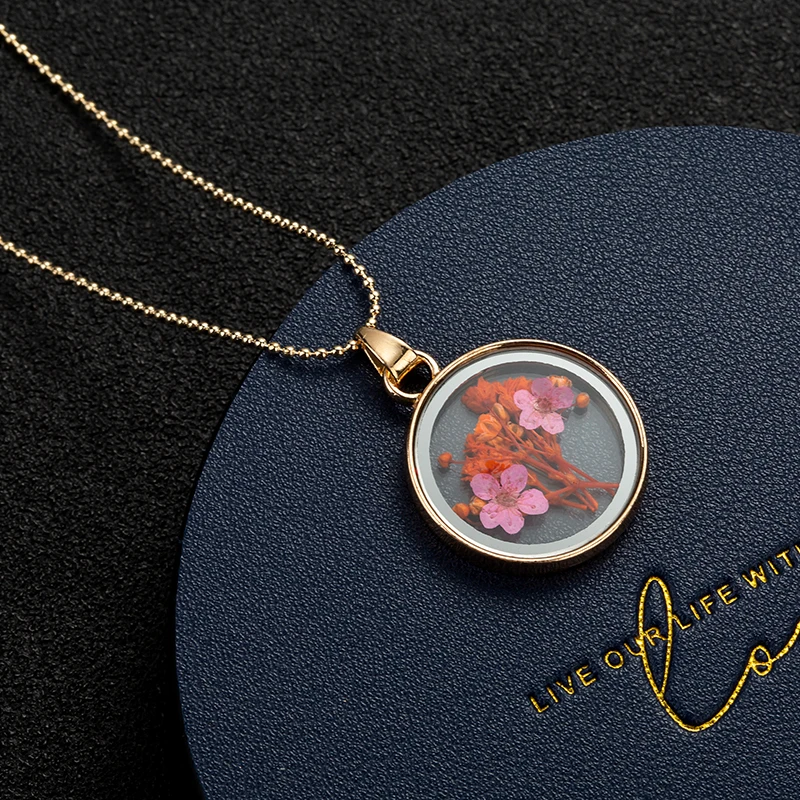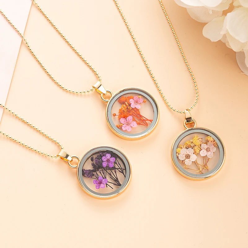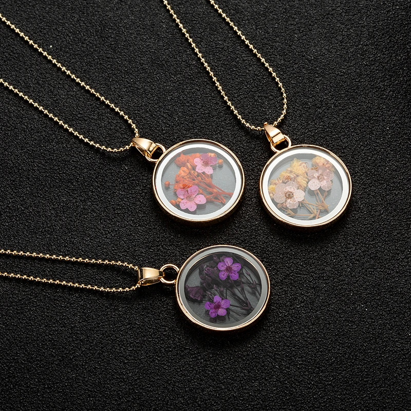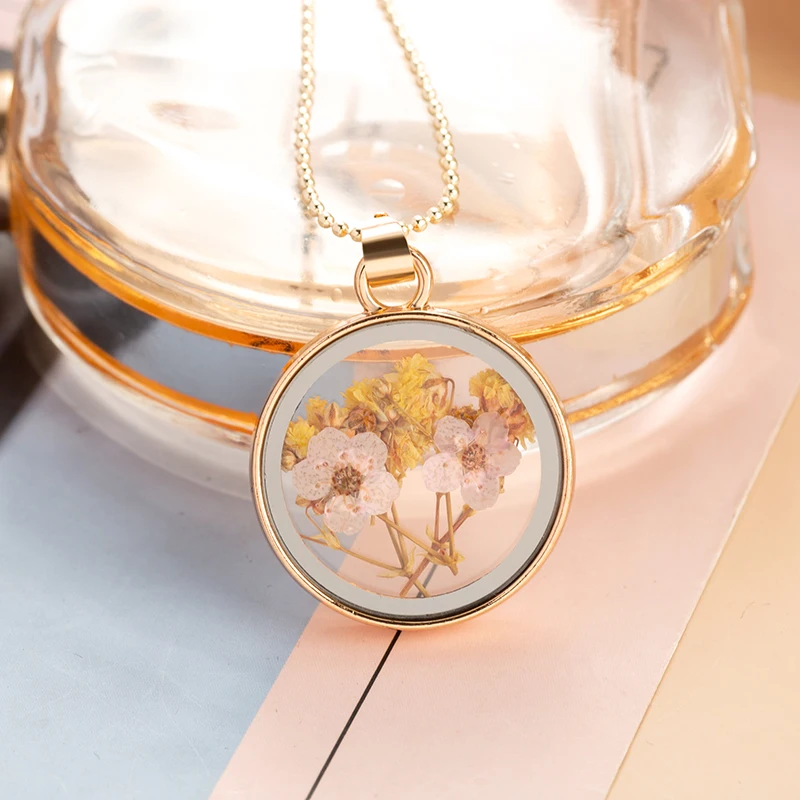 2021 Simple Round Glass Pendant Necklace Real Natural Dried Flower Necklace For Women Charm Gift Jewelry