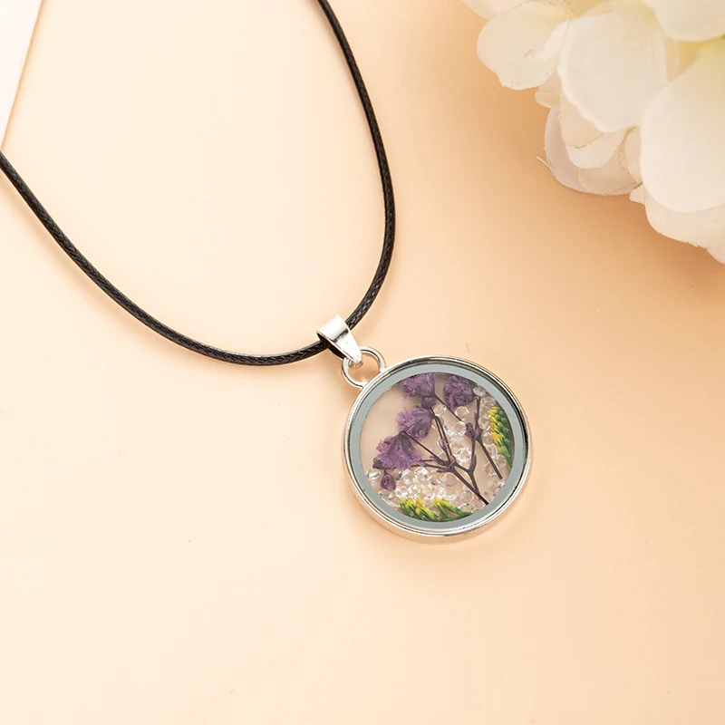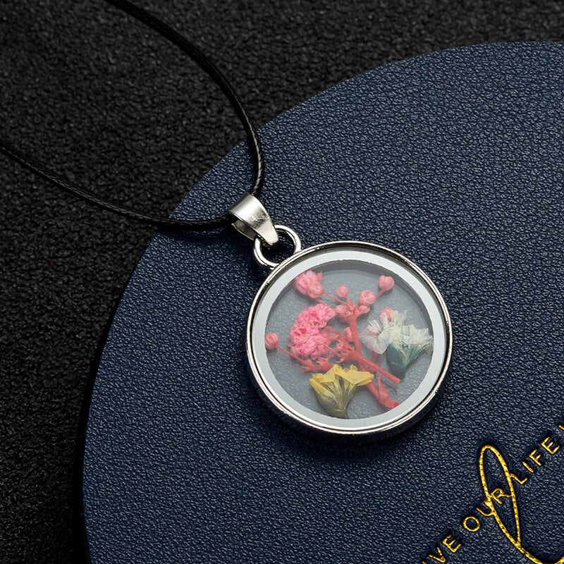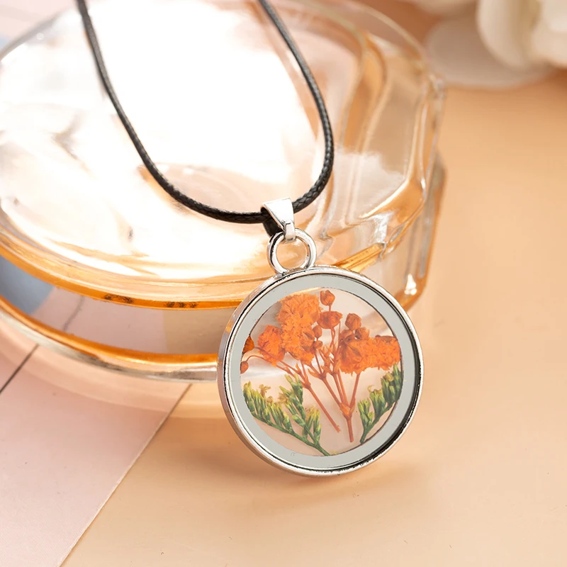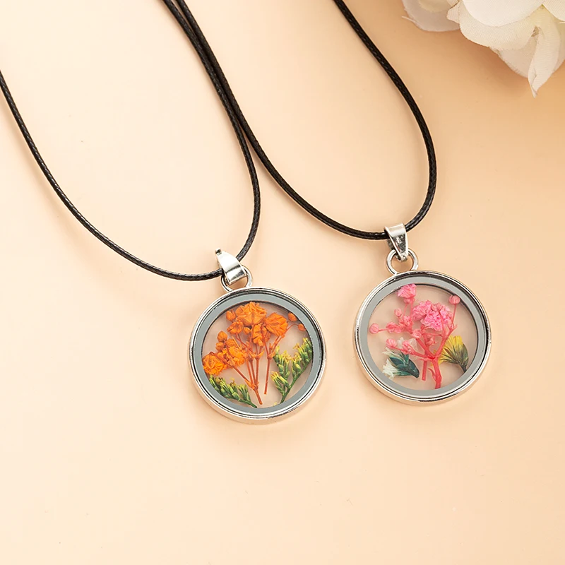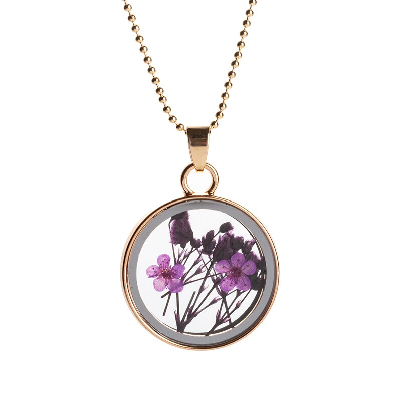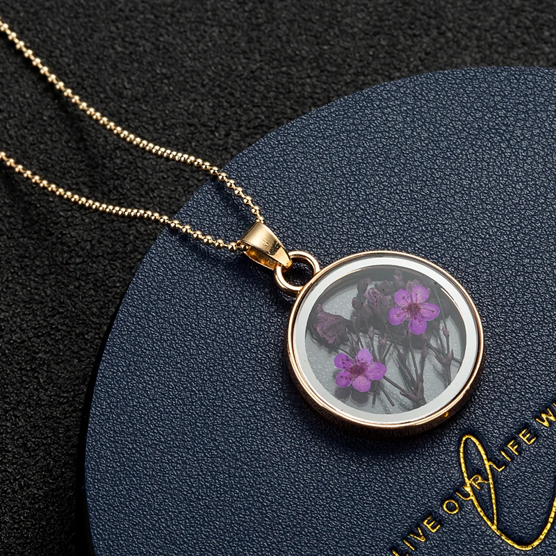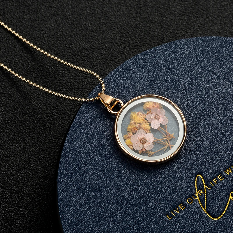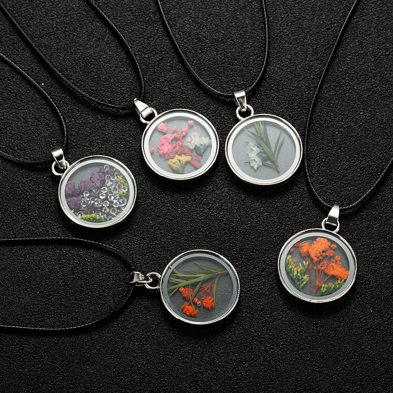 2021 Simple Round Glass Pendant Necklace Real Natural Dried Flower Necklace For Women Charm Gift Jewelry