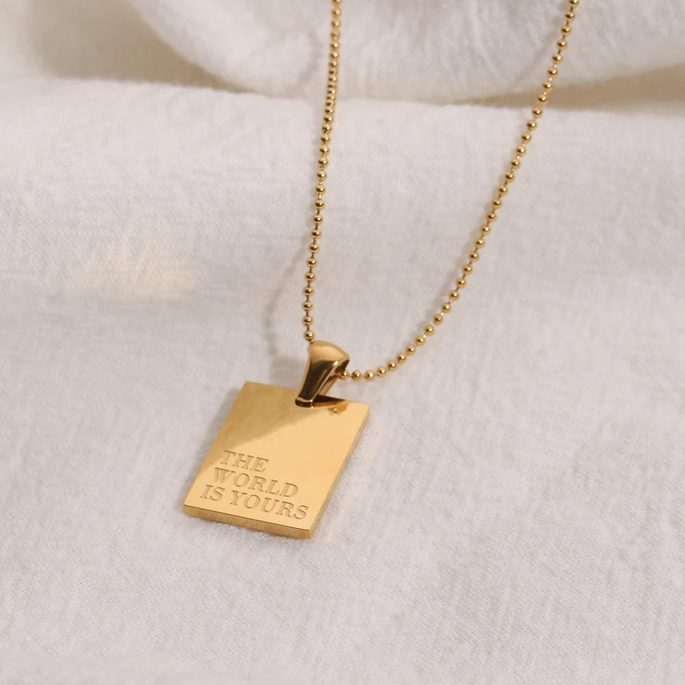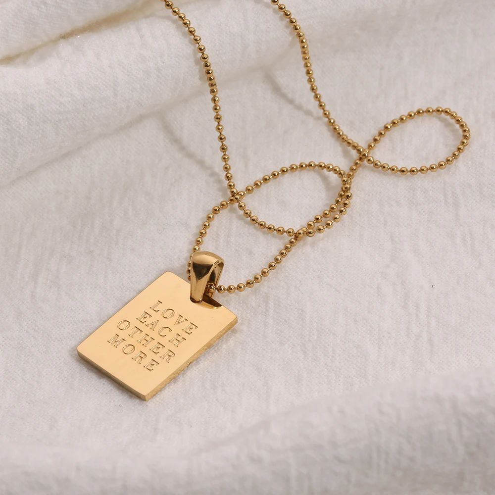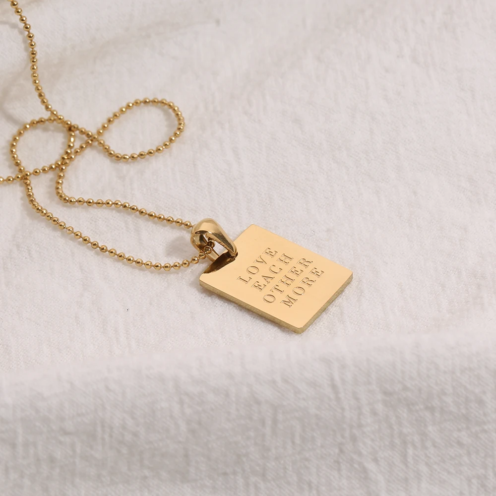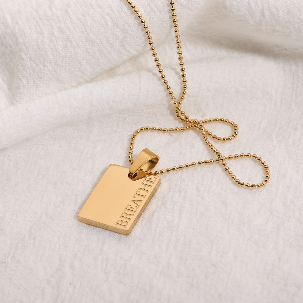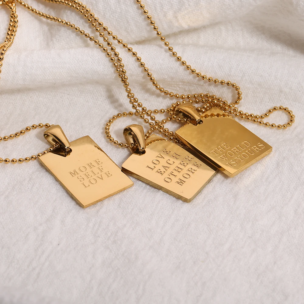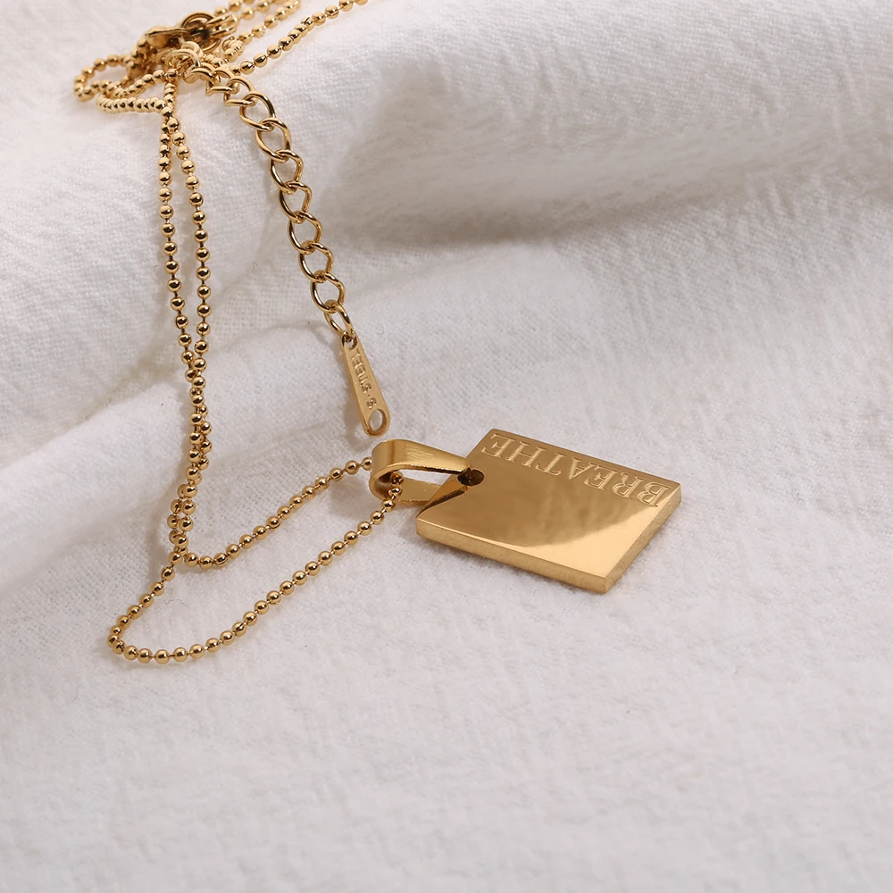2021 Stainless Steel Inspirational Necklace Gold Plated Engraved Letters Square Pendant Beads Chain Necklace For Women Girls