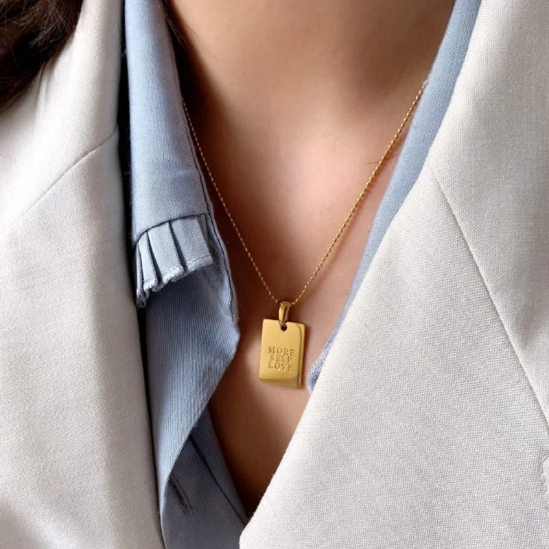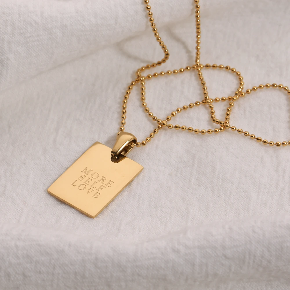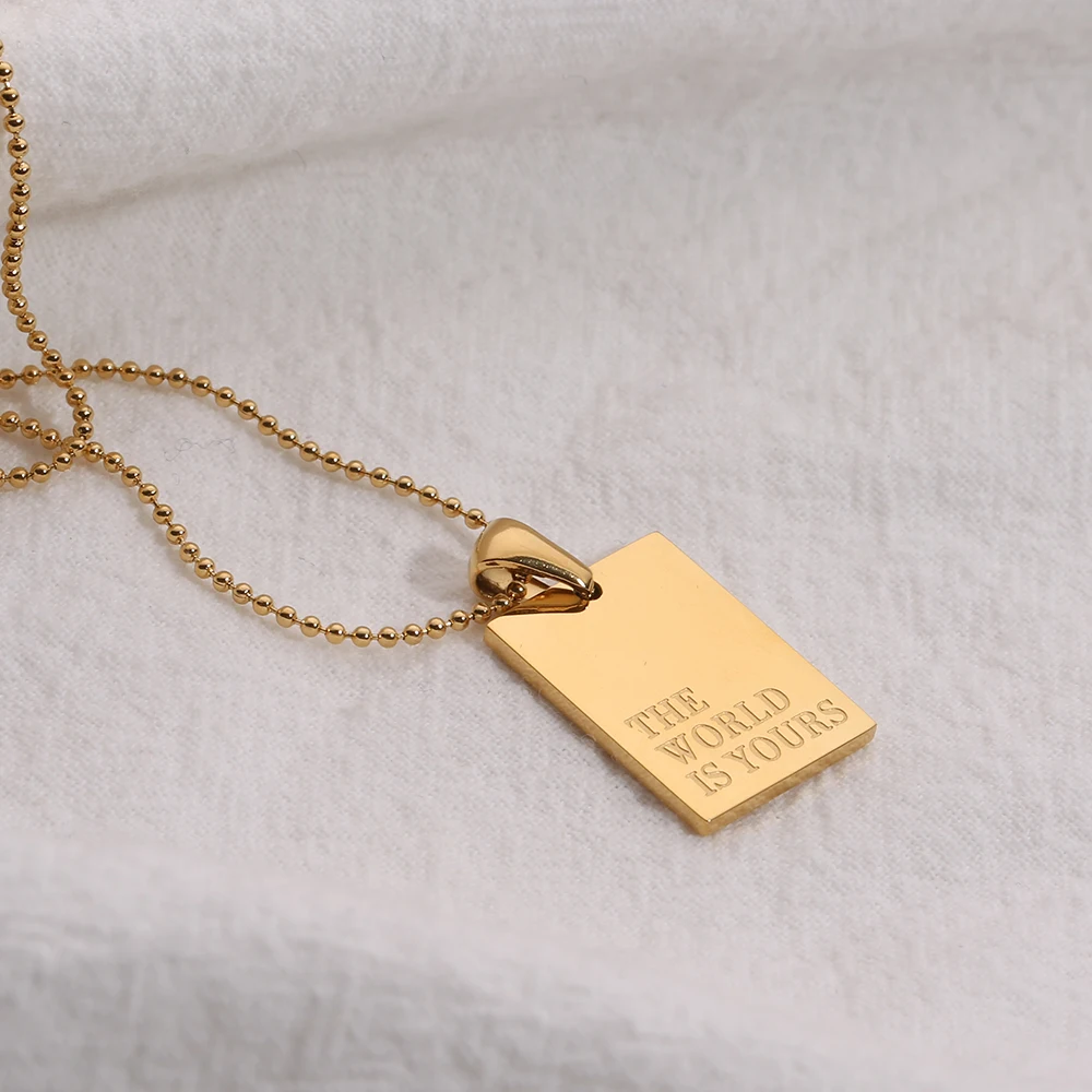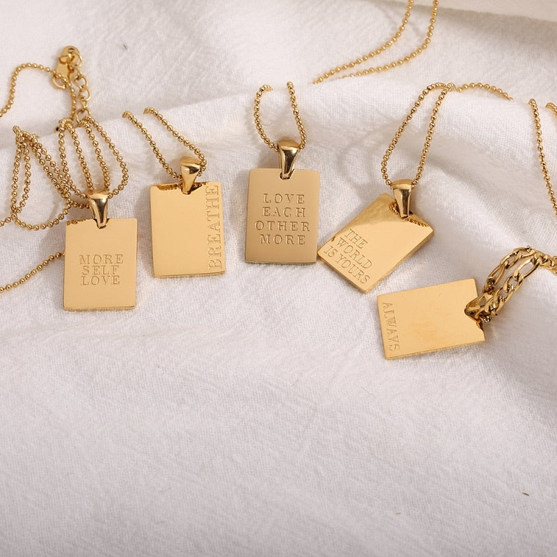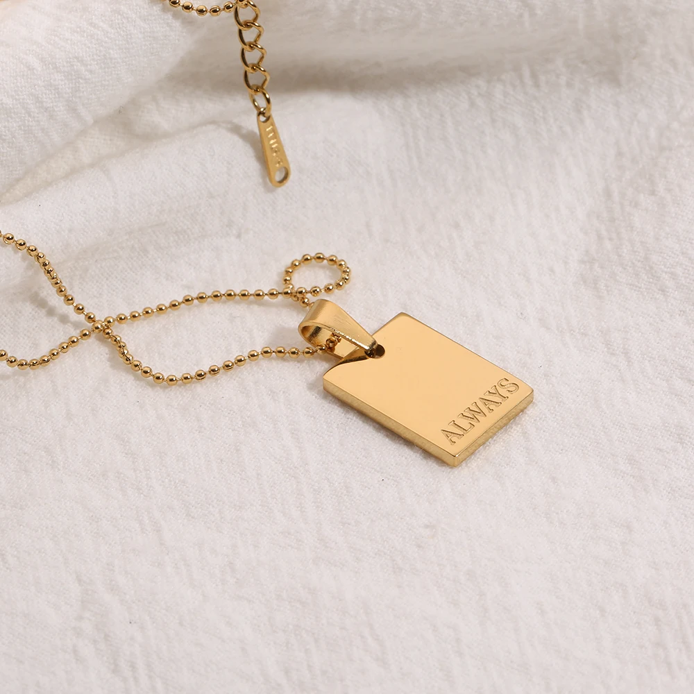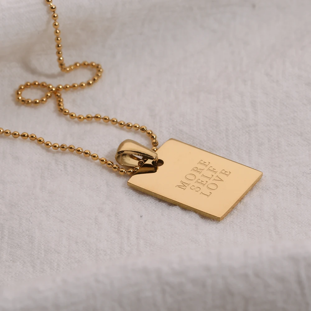 2021 Stainless Steel Inspirational Necklace Gold Plated Engraved Letters Square Pendant Beads Chain Necklace For Women Girls