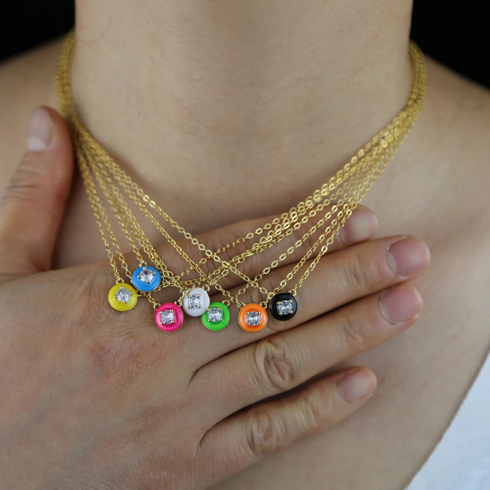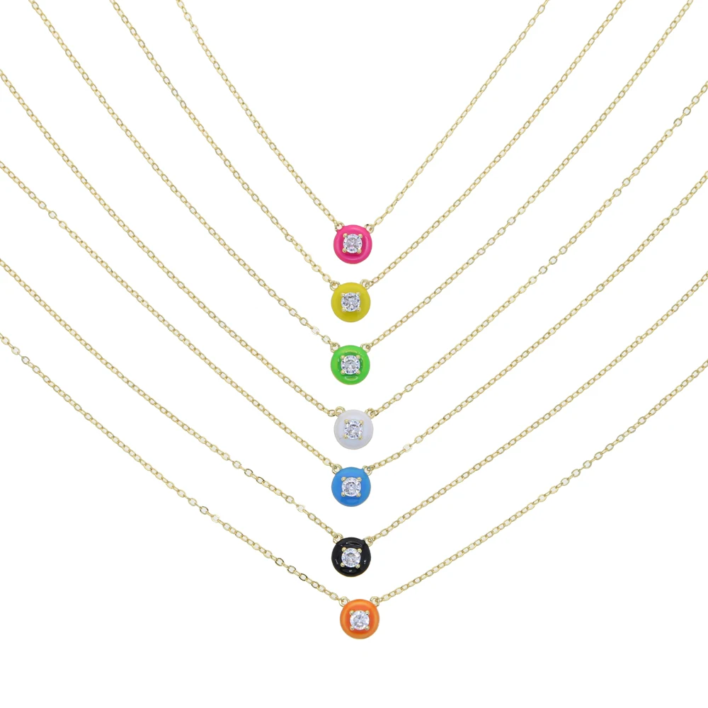 2021 Summer Jewelry Simple Geometric Round Charm Candy Neon Enamel Colorful Necklace For Girl