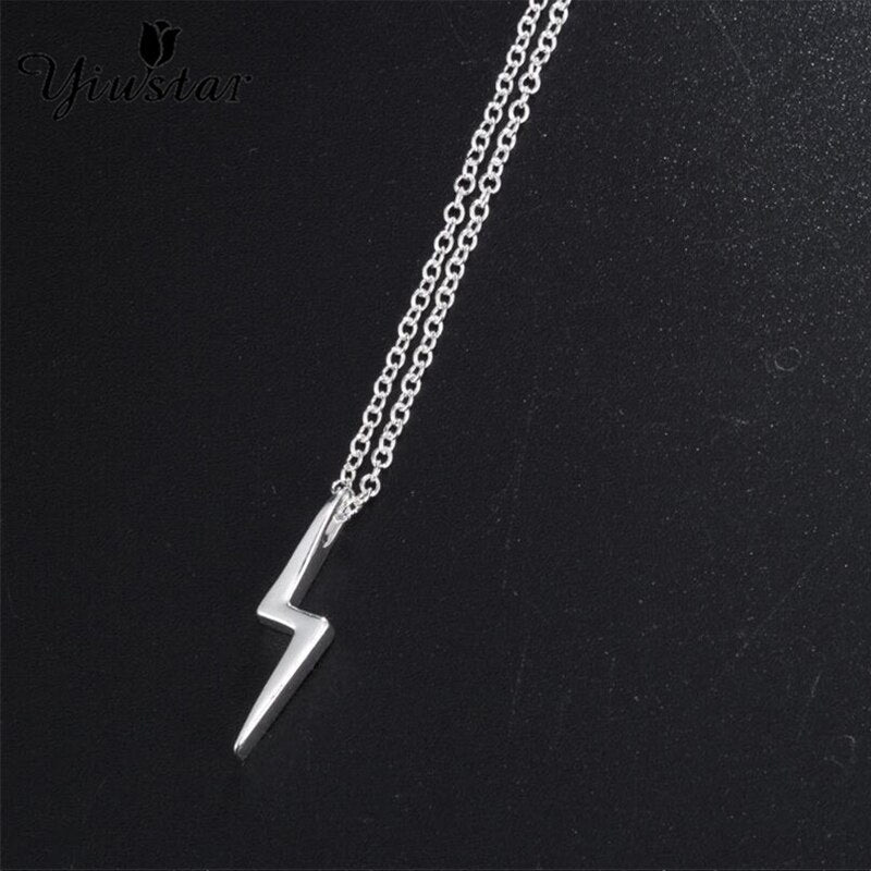 2021 Trendy Tiny Lightning Bolt Pendant Necklace Jewelry Celebrity Surgical Steel Beam Charm Chain Necklace for Women Party Gift