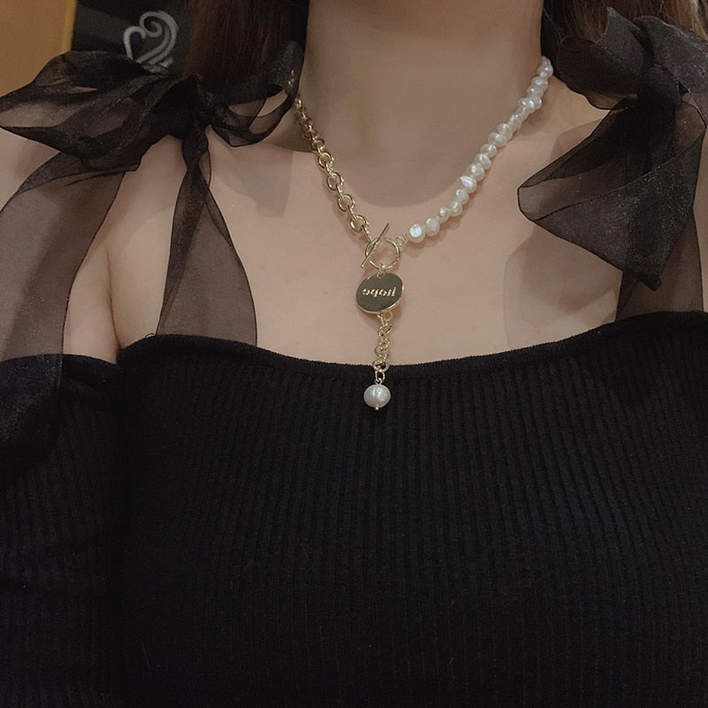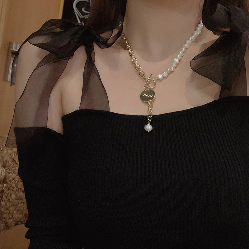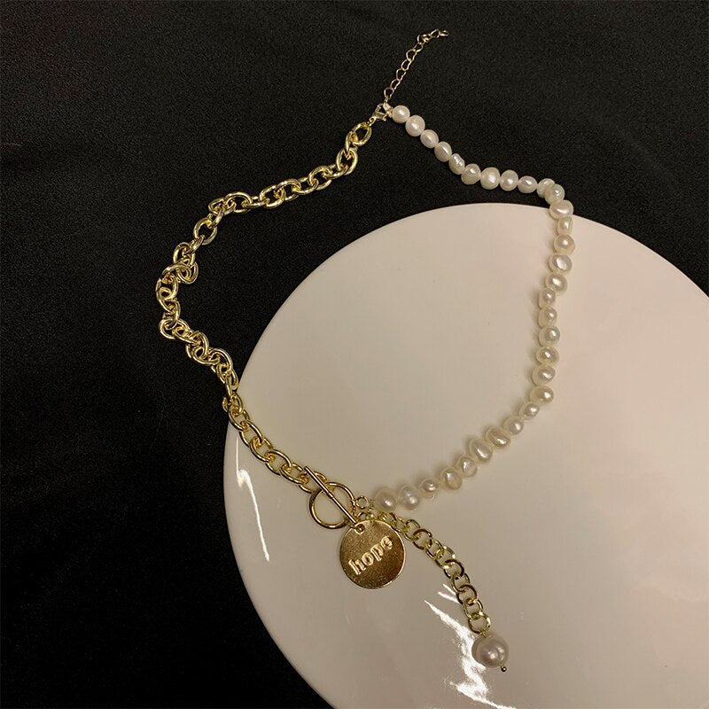 2021Pearl Chain Stitching round Necklace Ins Advanced Light Clavicle Chain Internet Celebrity OT Buckle Necklace