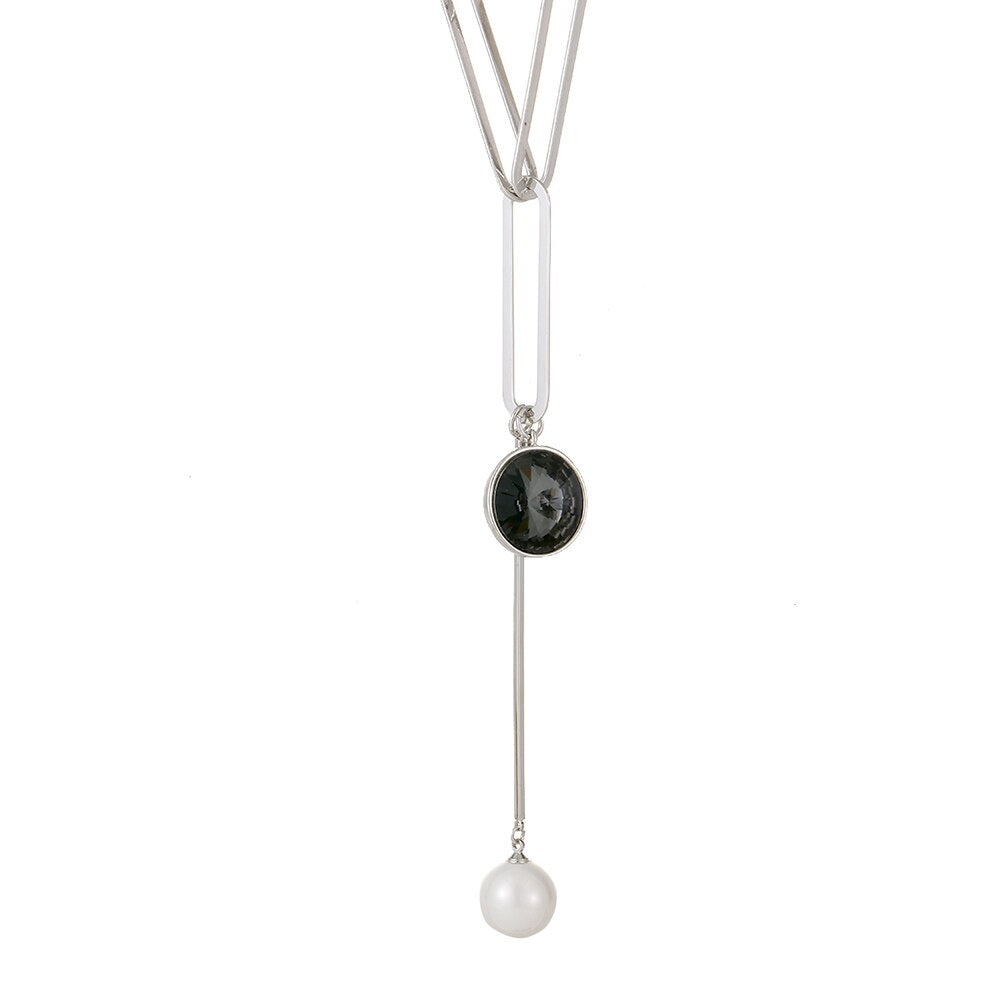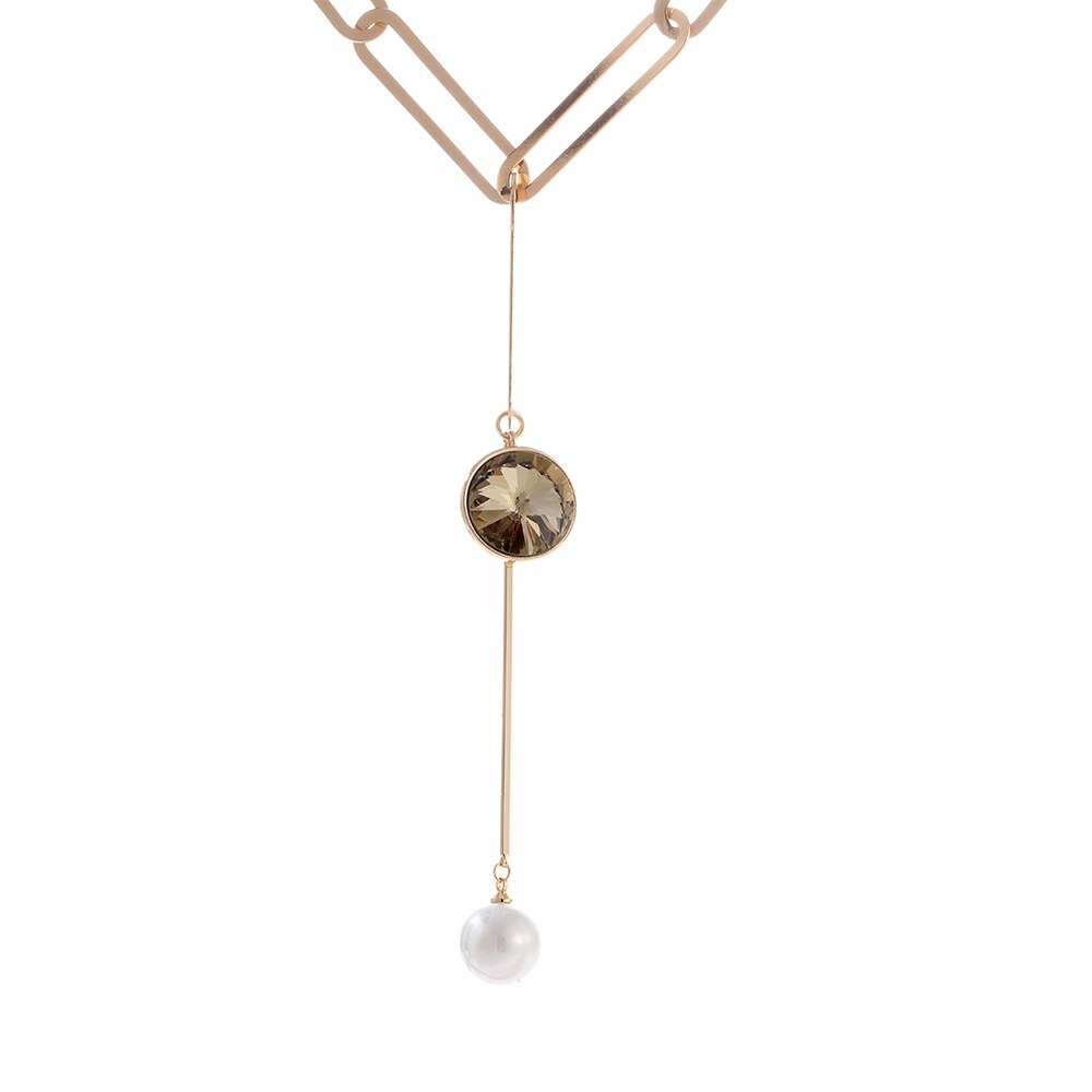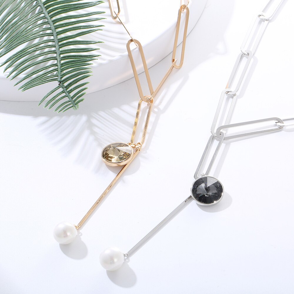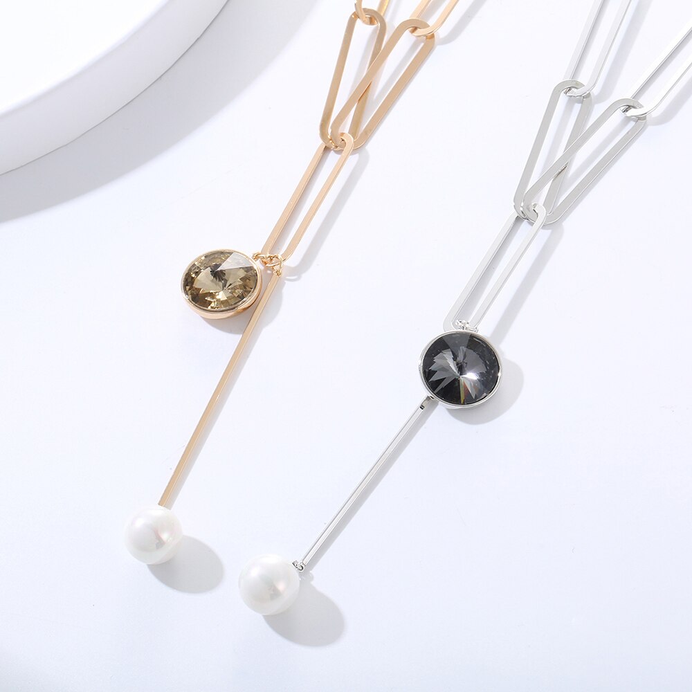 2022 Long Link Chain Necklace For Woman Gold Silvery Big Glass Round pearl Pendant Sweater Chian Necklaces Jewelry Accessories