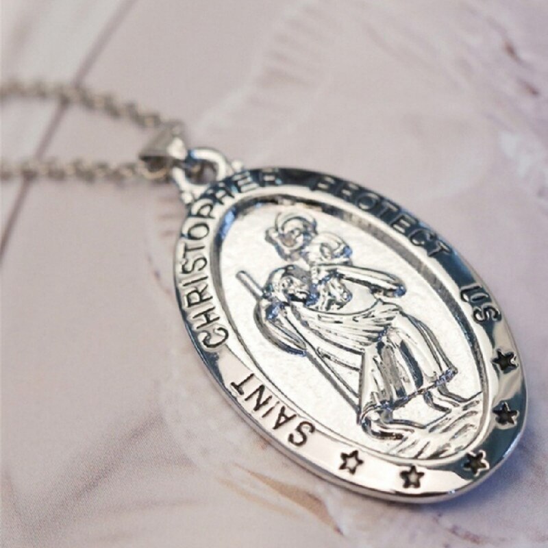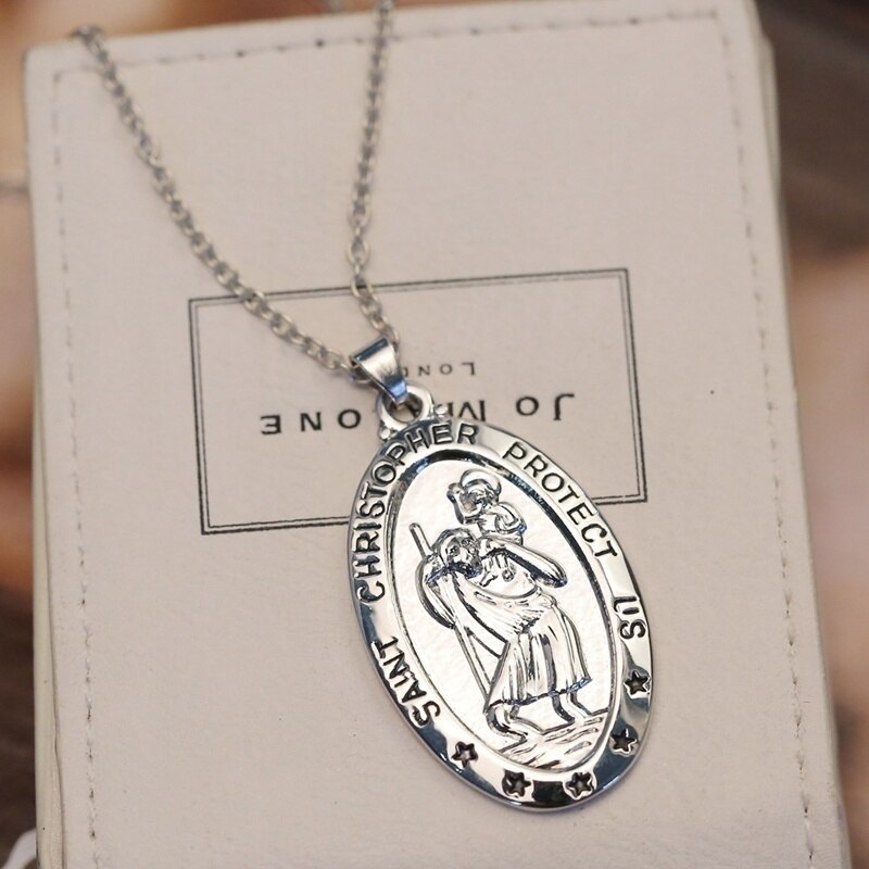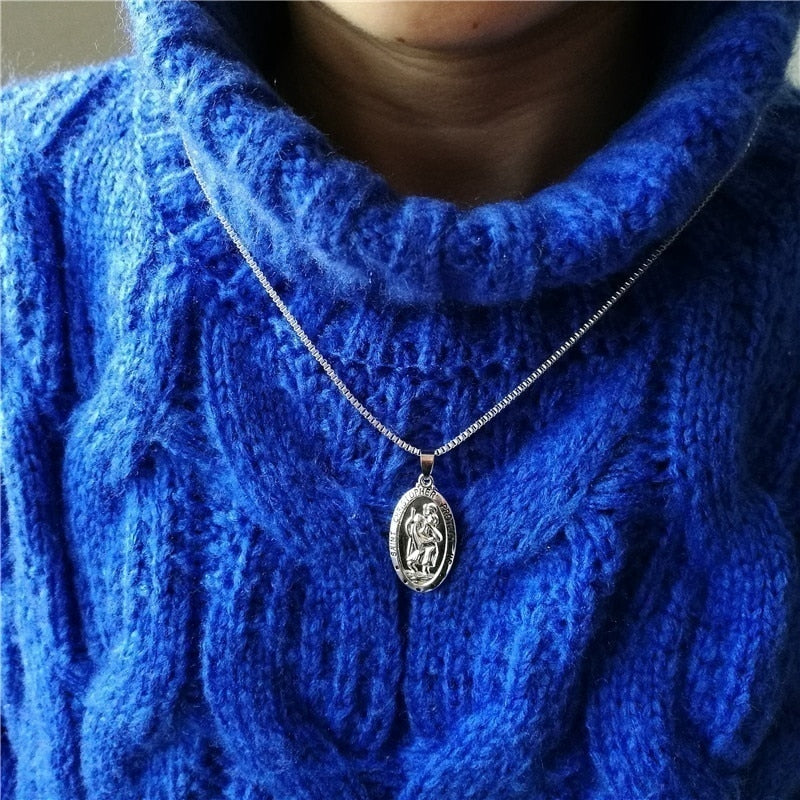 2022 Retro St. Christopher Oval Pendant Necklace for Women Pendant Clavicle Chain Accessories Party Jewelry