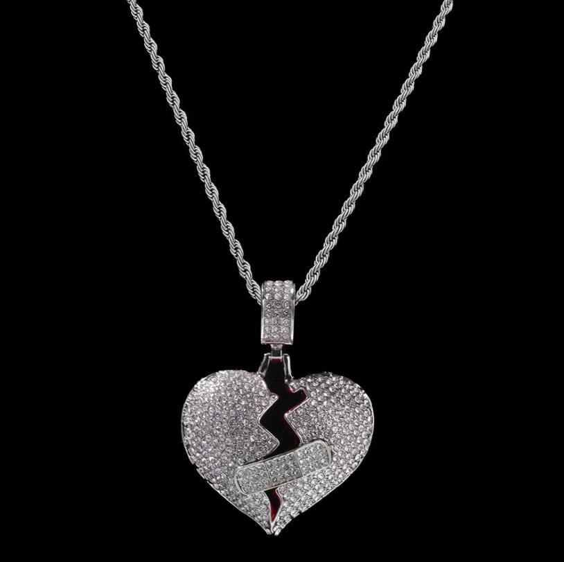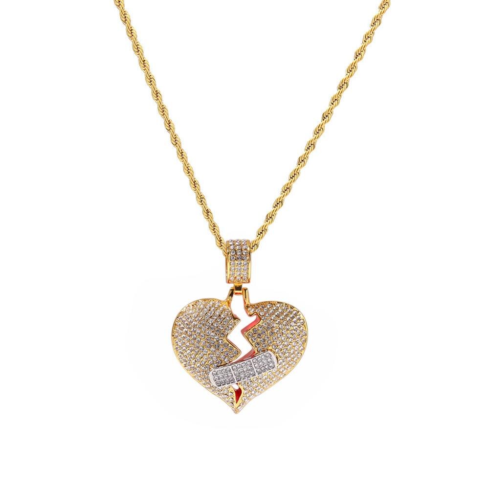2022 Style Men Hip hop iced out bling Broke heart Pendant Necklaces Charm Pendants Necklace Hiphop Unisex jewelry