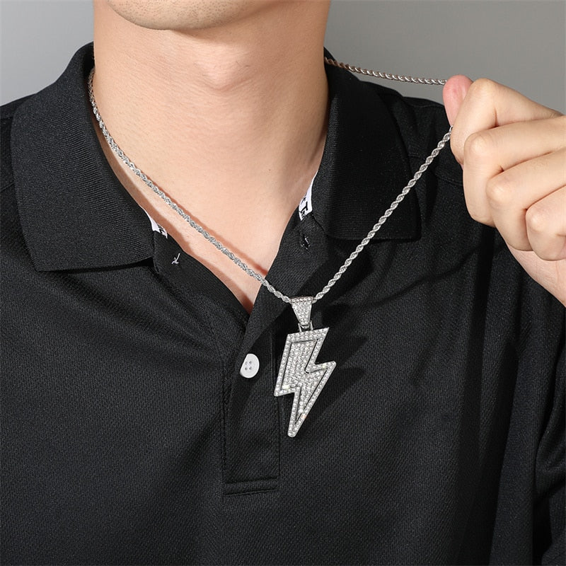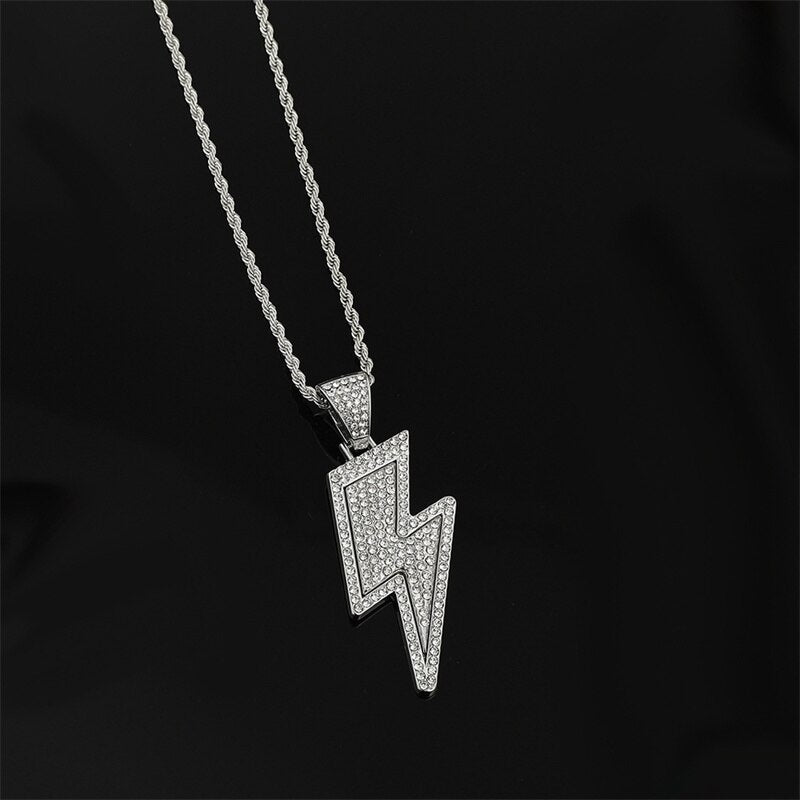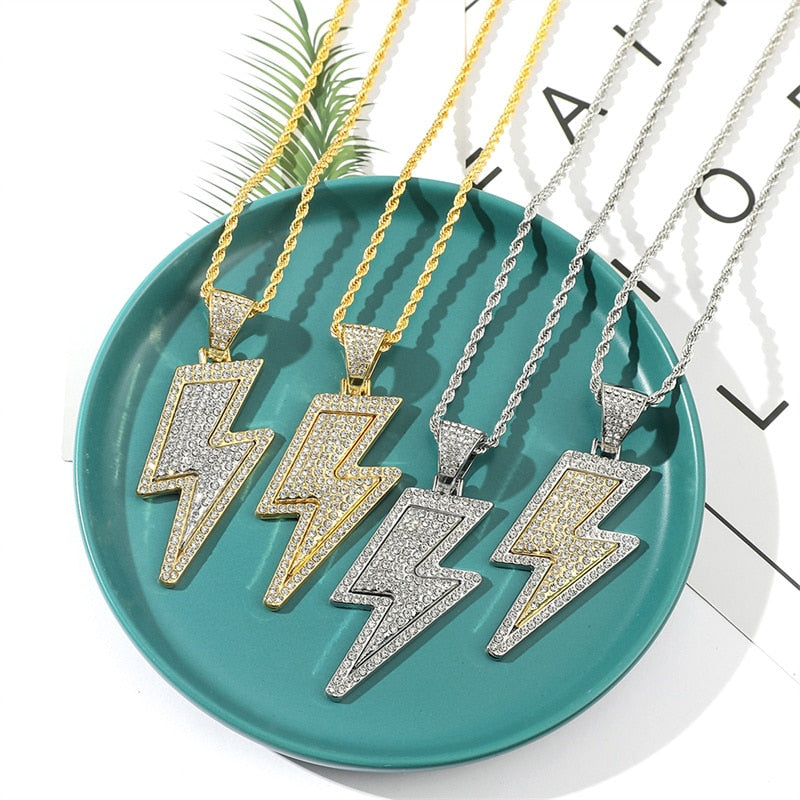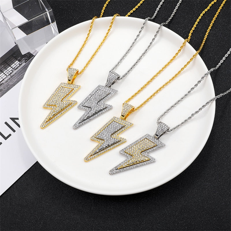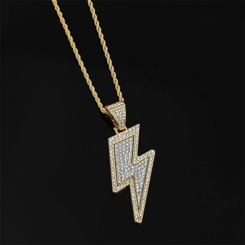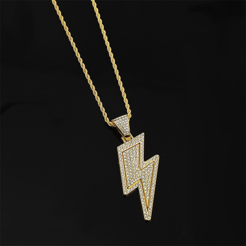 2022 Temperament Hip Hop Retro Full Zircon Lightning Necklace Gold Men's Party Locomotive Accessories Pendant Necklace Jewelry
