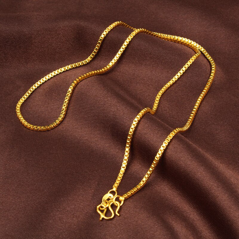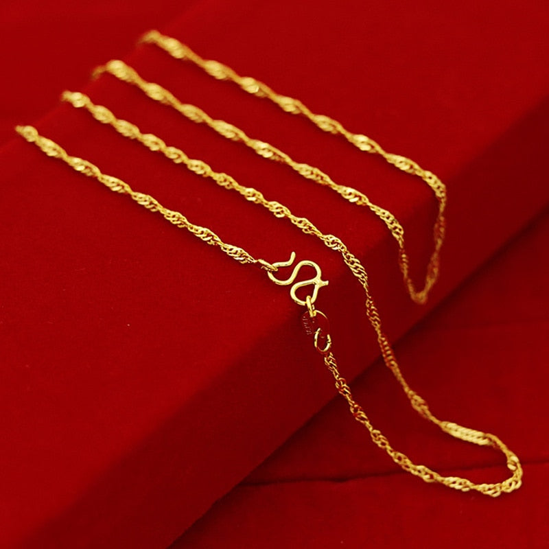 24K Gold Necklace 45CM Box Chain/Water Ripple/Single Water Ripple Necklace With Chain For Woman Jewelry Gift With Chain DIY