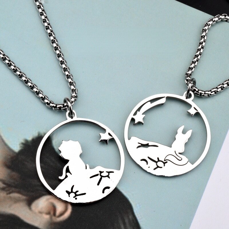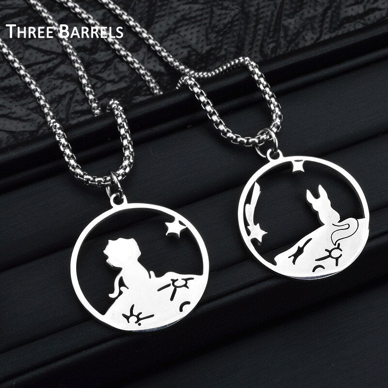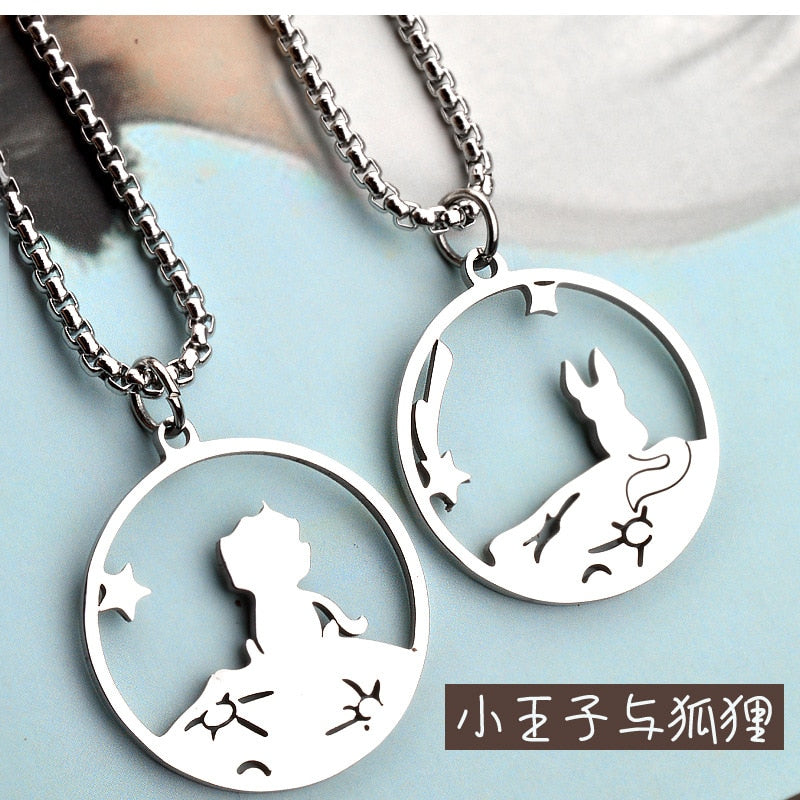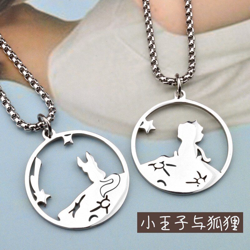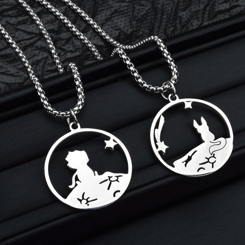 2pcs Little Prince and Fox Couple Necklace Lovers Paired Pendants Friends Stainless Steel Chain Necklace Jewelry