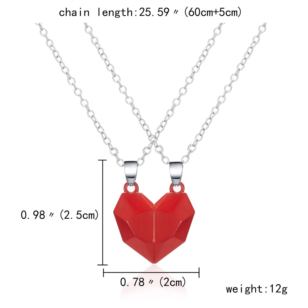2Pcs/Lot Magnetic Couple Necklace Friendship Heart Pendant Distance Faceted Charm Necklace Women Valentine's Day Gift 2021