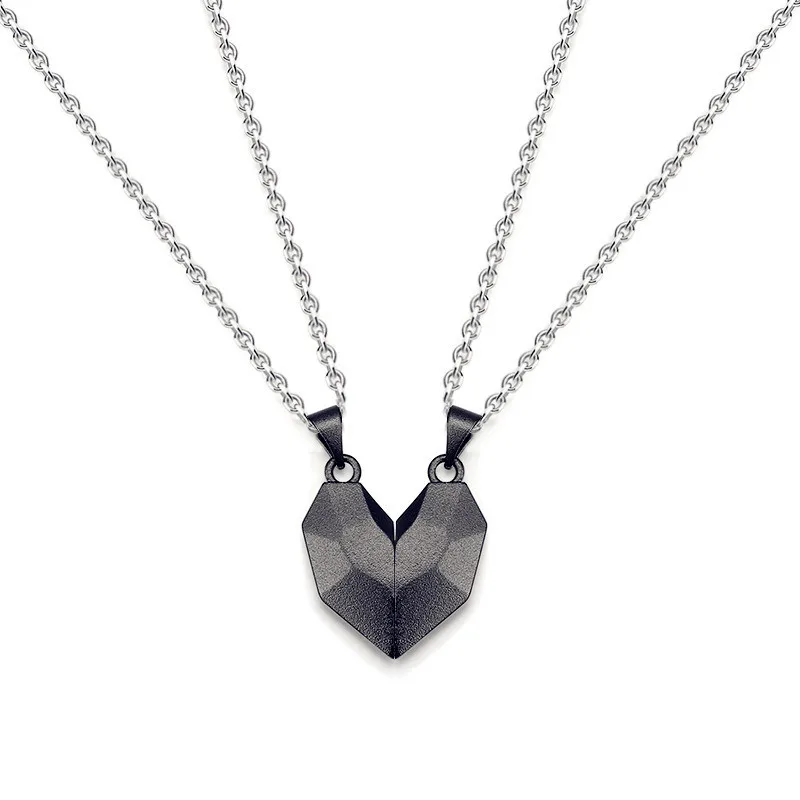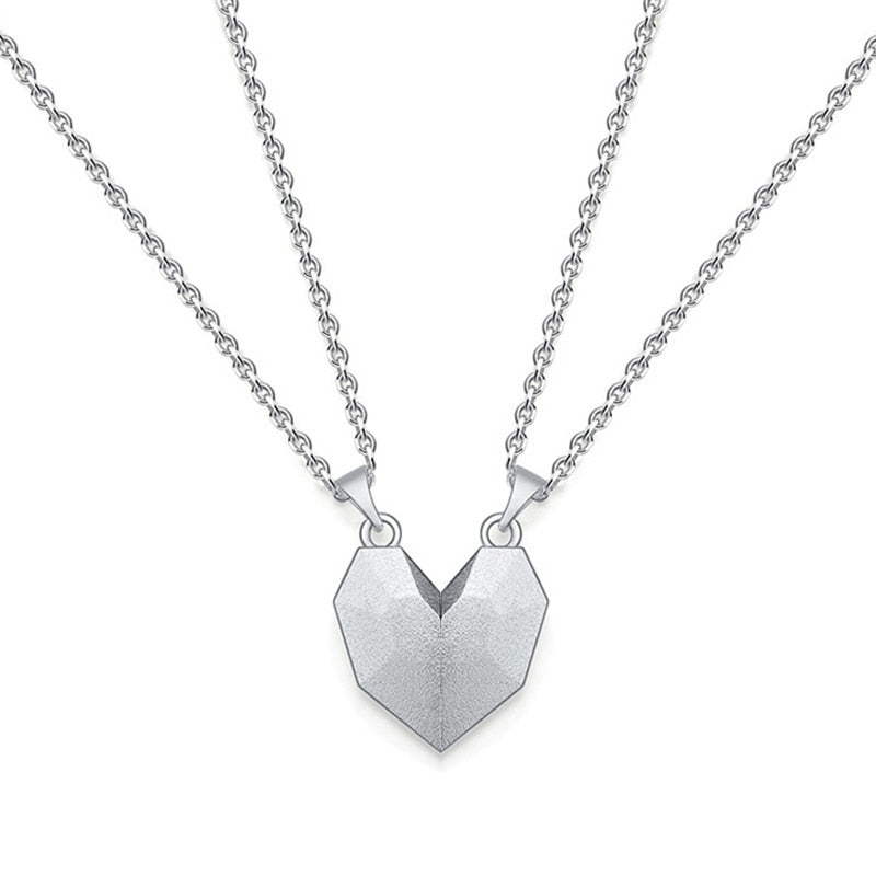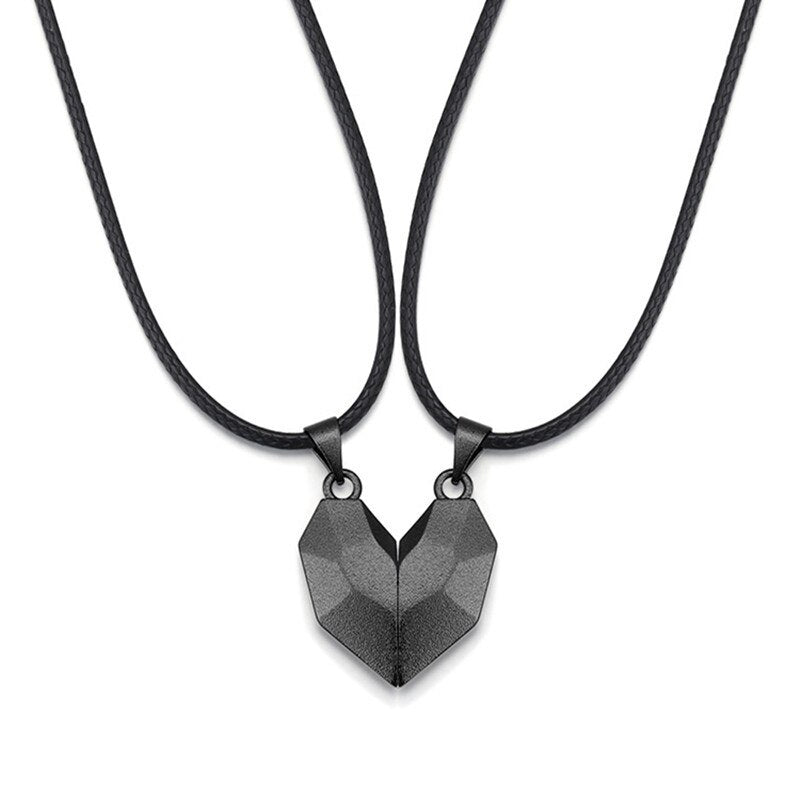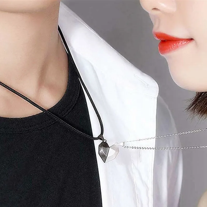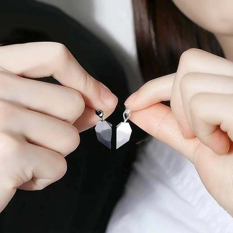 2Pcs Love Heart-to-Heart Magnetic Couple Necklace For Women and Men Long Distance Love Charm Pendant Necklaces Set Lovers Gifts