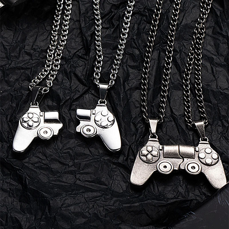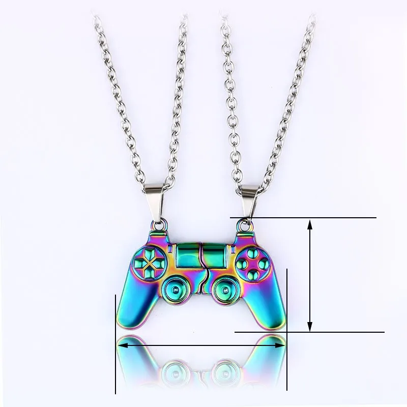 2Pcs/Set Magnetic Game Controller Couple Necklace with Gold/Silver Color PS4 Game Console Pendant Necklace Valentine's Day Gift
