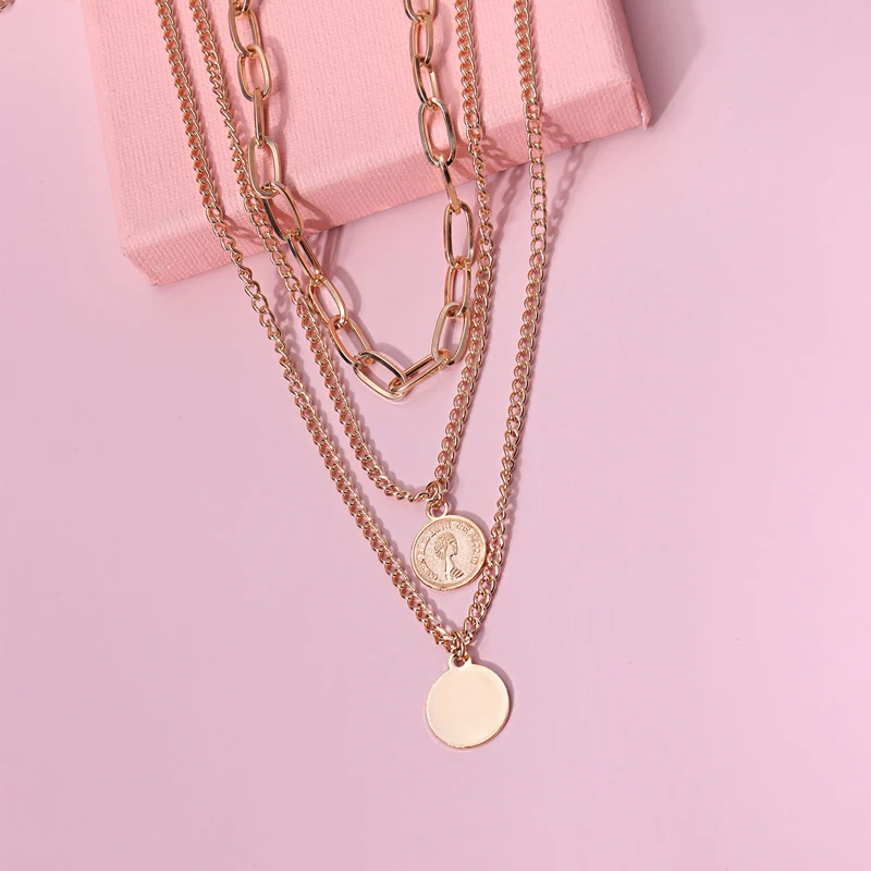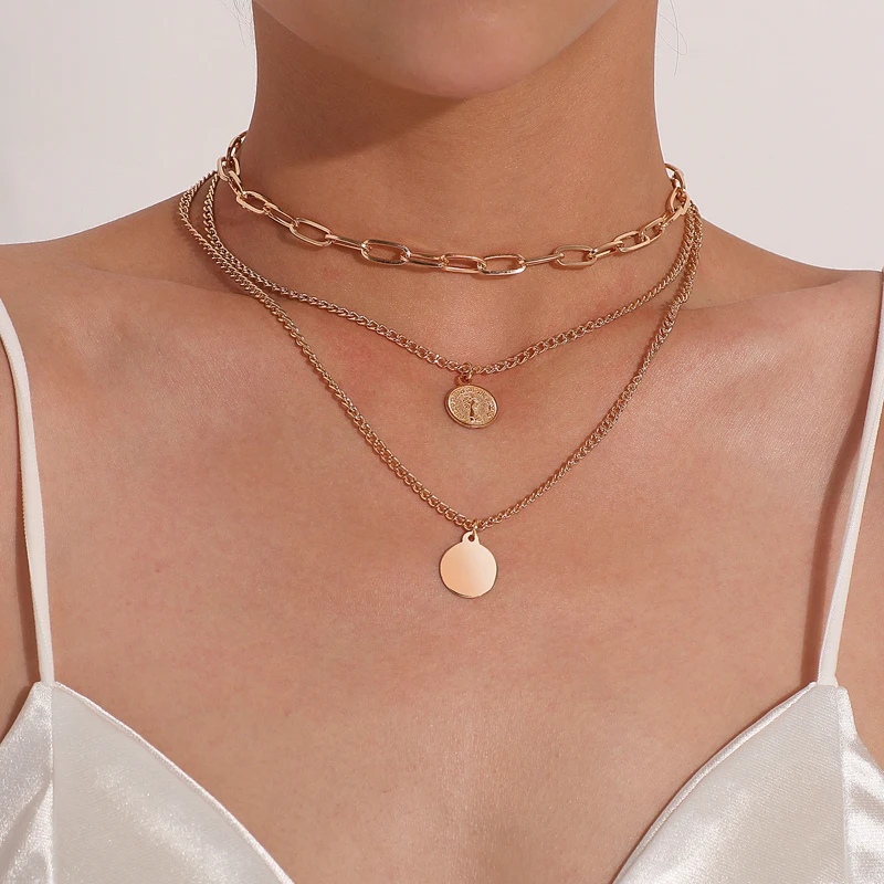 3 Pcs/set Gold Color Layered Choker Necklace Women Boho Chain Coin Necklace Female Pendant Jewelry Gift