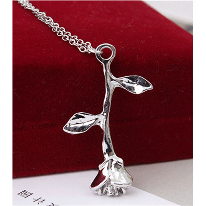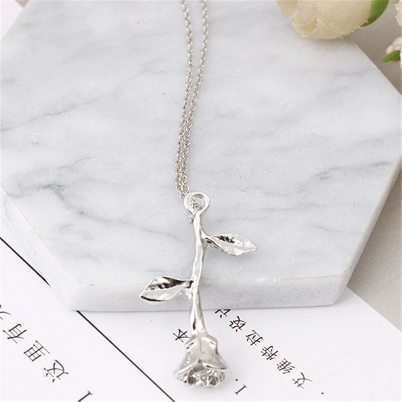 3D Rose Pendant Charm Necklace Final Rose Flower Beauty And Beast Jewelry Women Girls Party Gift