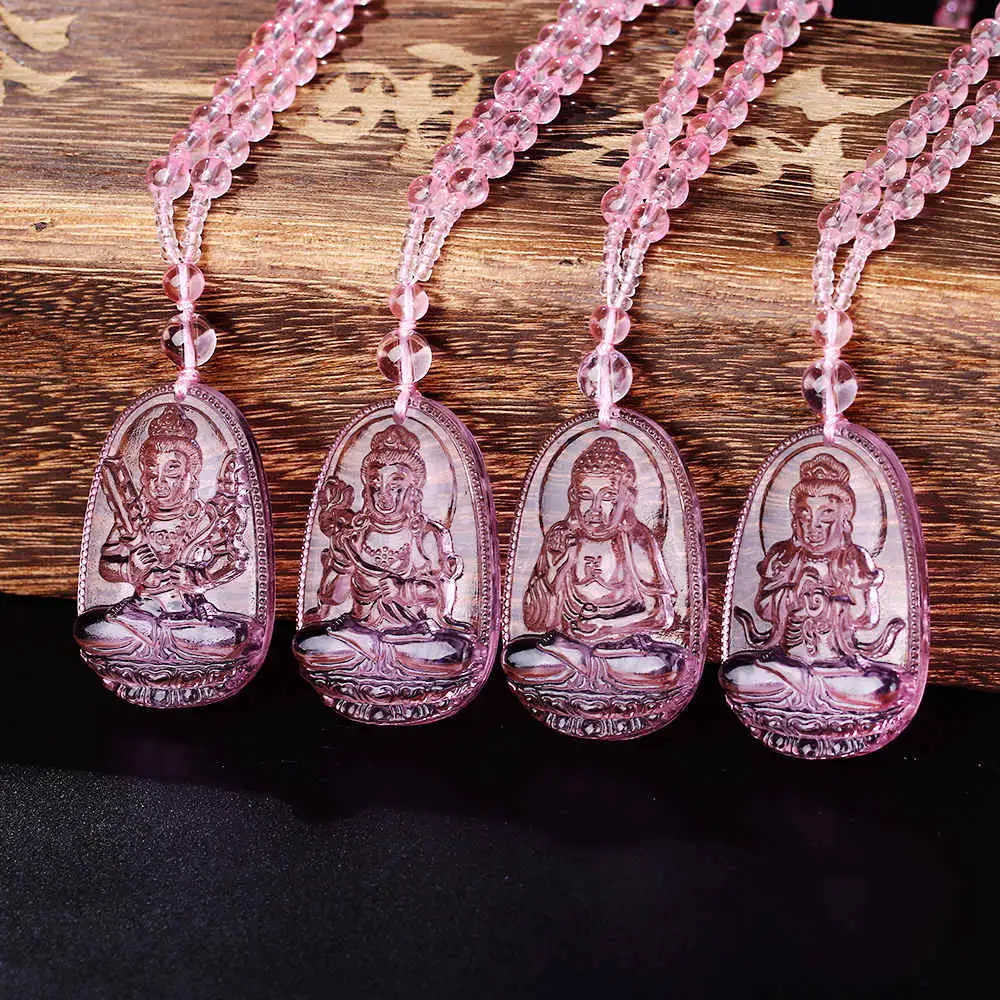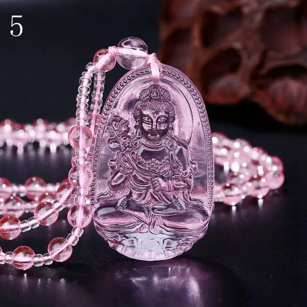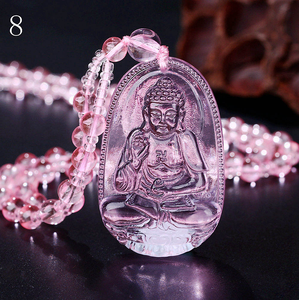4pcs Purple crystal Quartz Necklace Natural Stone Pendant Buddha Chain Crystal Carved Women Men Jewelry buddha head Lucky Gift
