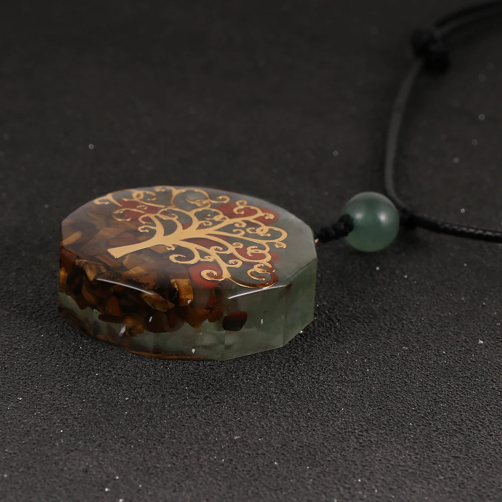 7 Chakra Quartz Natural Stone Tree of Life Orgone Pendant Necklace Men Women Healing Round Crystal Resin Necklaces Reiki Jewelry