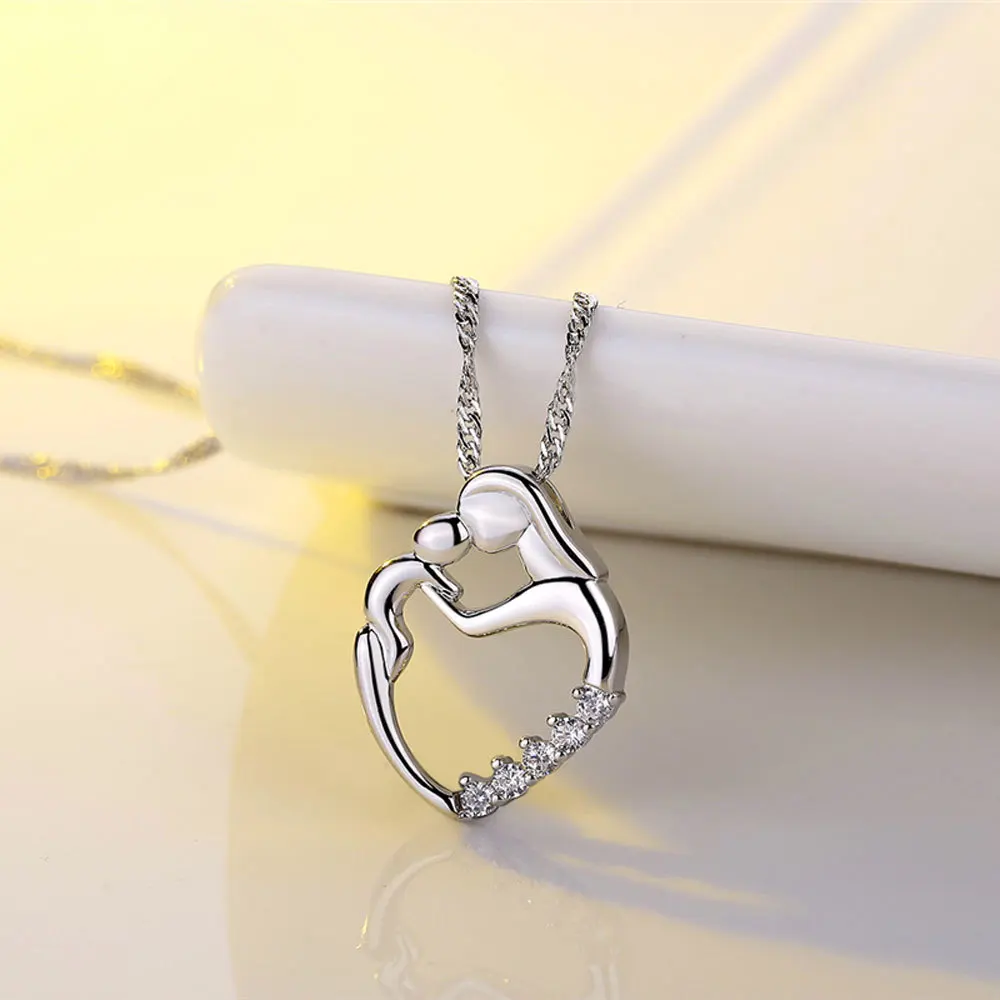 808 STORE Fine Jewelry Mother Child Heart Shaped Necklace Fashion Women Crystal Pendant Necklace Jewelry Wedding Christmas Gift