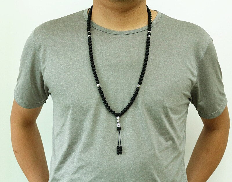 8mm and 6mm black beads with Alloy charm Shape 99 Prayer Beads Islamic Muslim Tasbih Allah Mohammed Rosary for women men